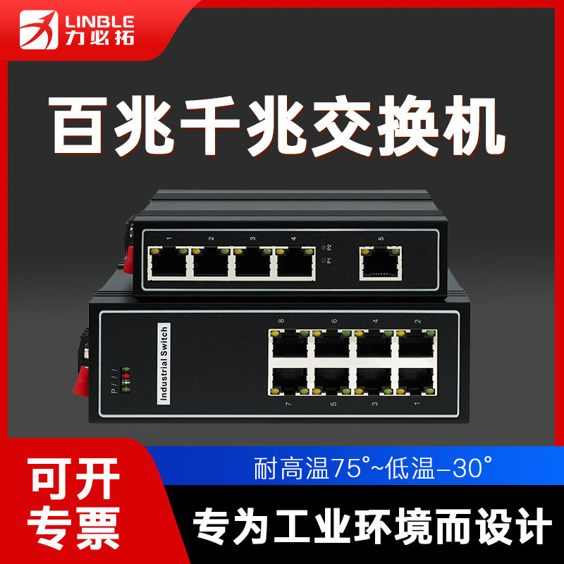 力必拓工业级交换机5口8口POE百兆千兆网口供电卡轨式以太网交换器工业路由器