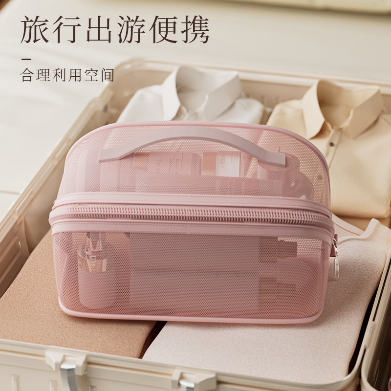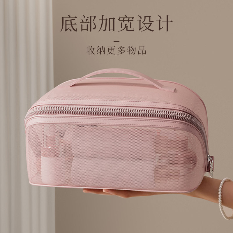 新款网纱化妆包透明手提旅行洗漱包大容量便携护肤品化妆刷收纳包