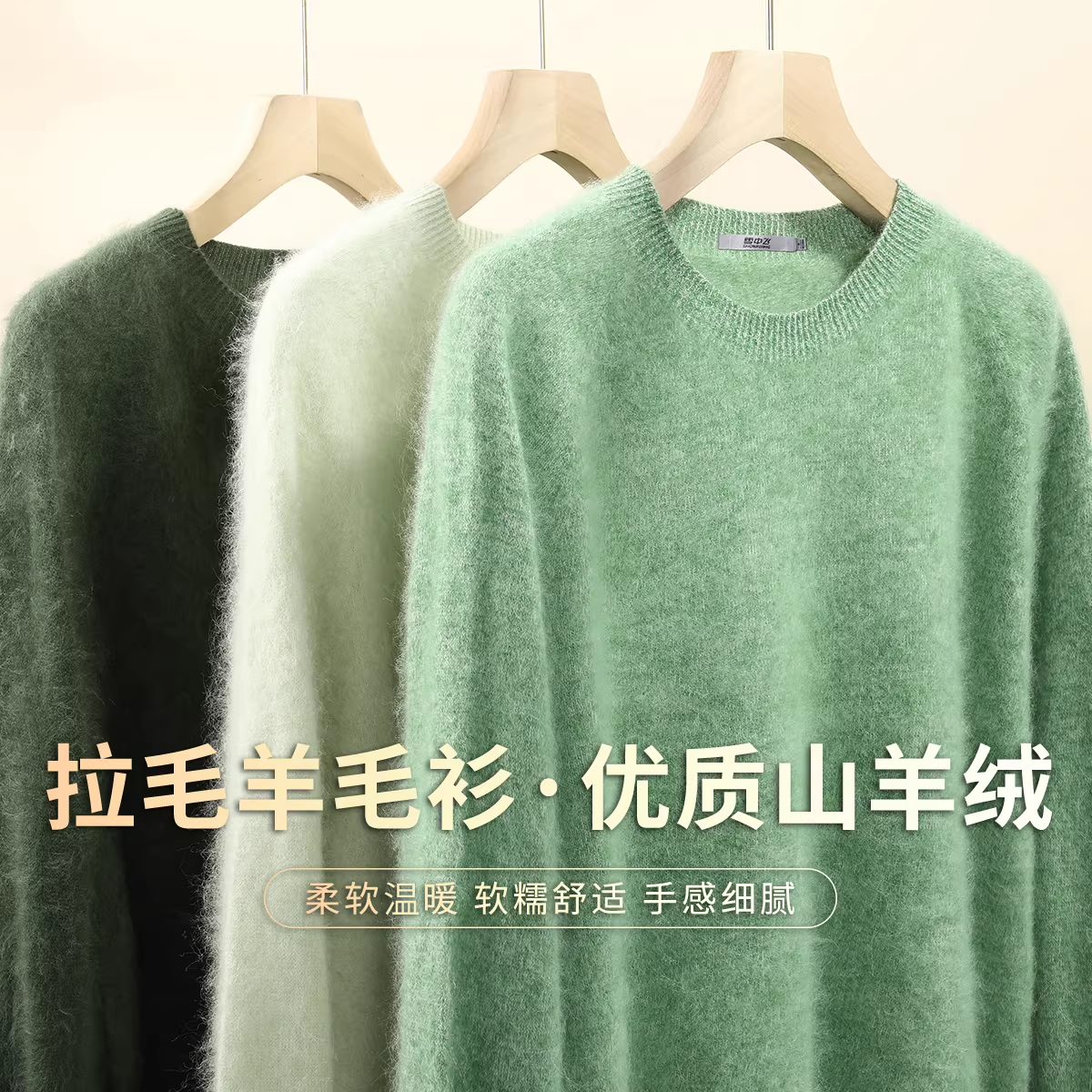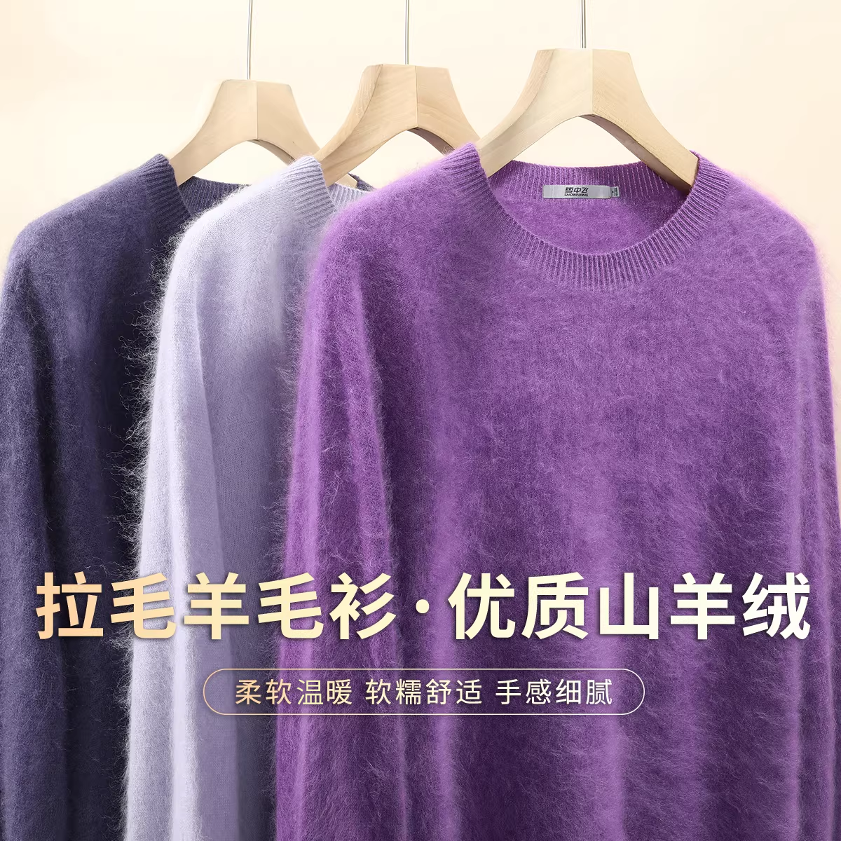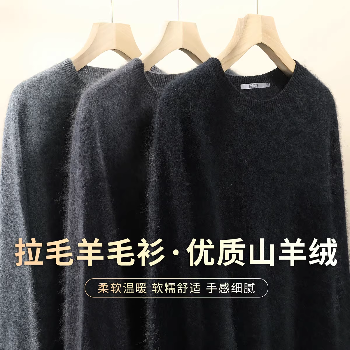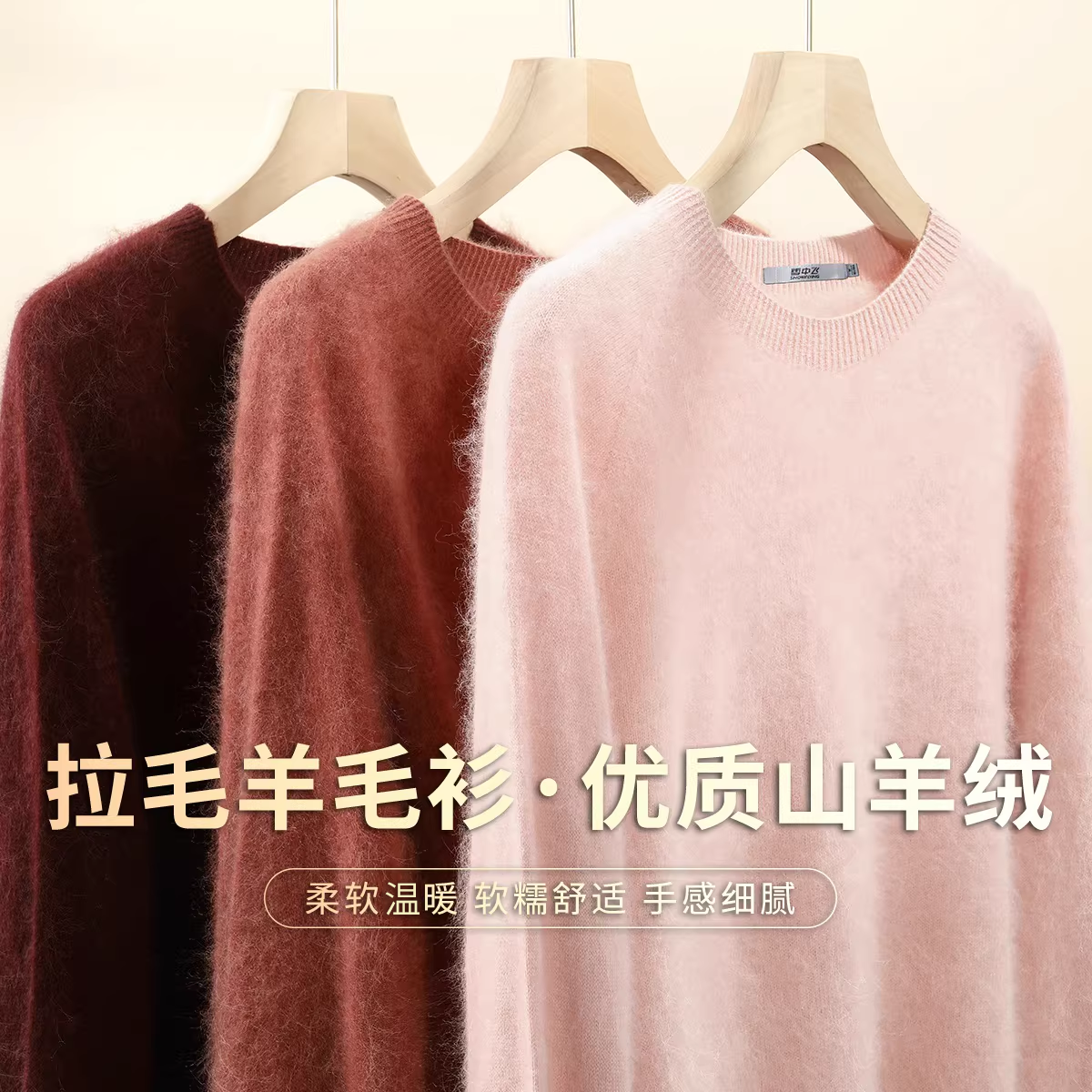 雪中飞【轻奢山羊绒】秋冬拉毛款圆领长袖毛衣女纯色暖羊毛衫W