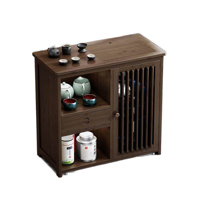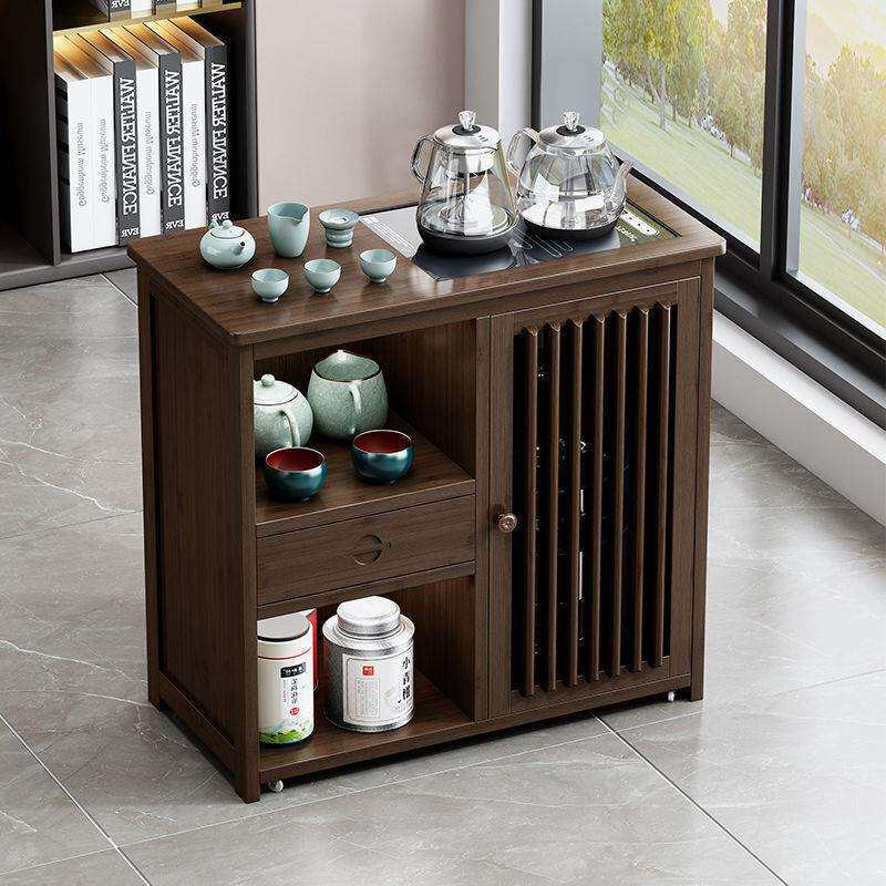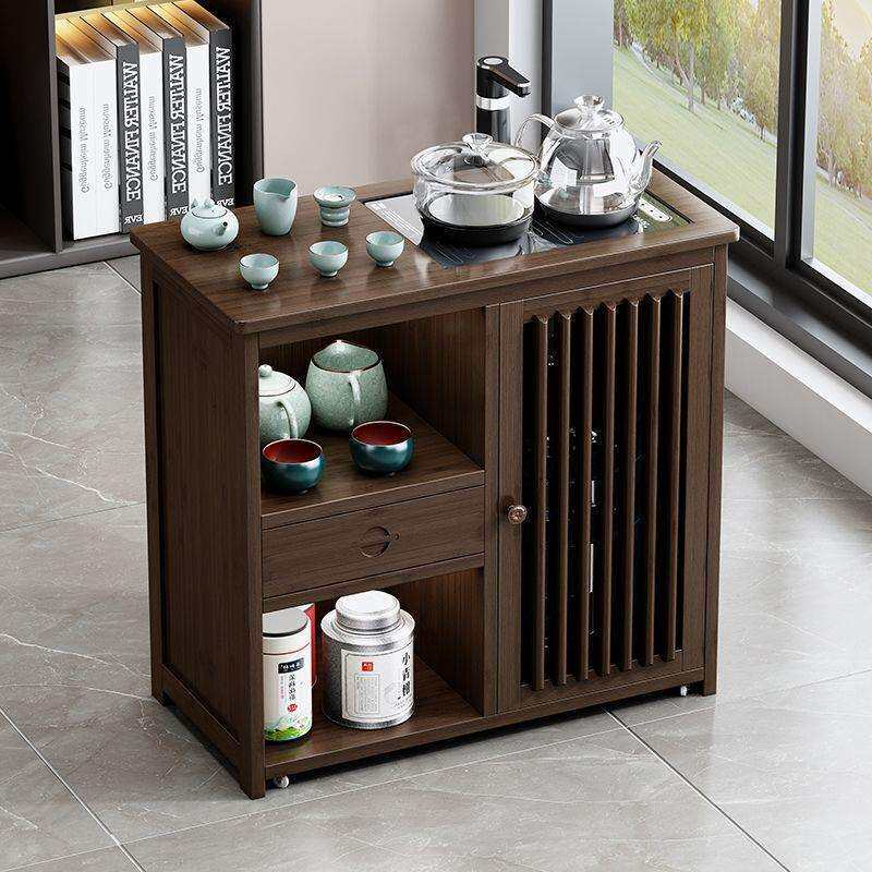 可移动茶台茶桌侧边柜沙发边几储物茶水柜实木带轮烧水壶一体茶几