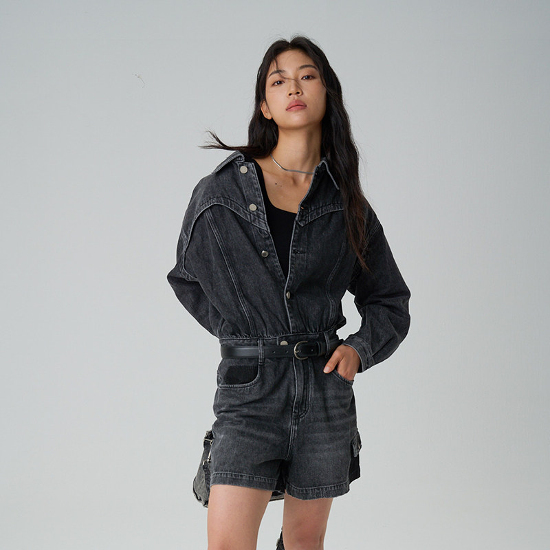 【100%棉牛仔连体裤】MSLAN港风休闲复古中腰连体裤MECA4201
