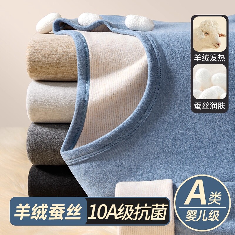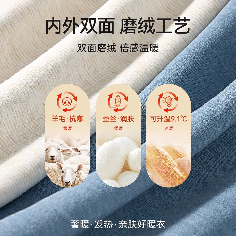兰帕媛无痕保暖内衣套装双面磨毛绒羊毛蚕丝紧身男女士大人冬季6