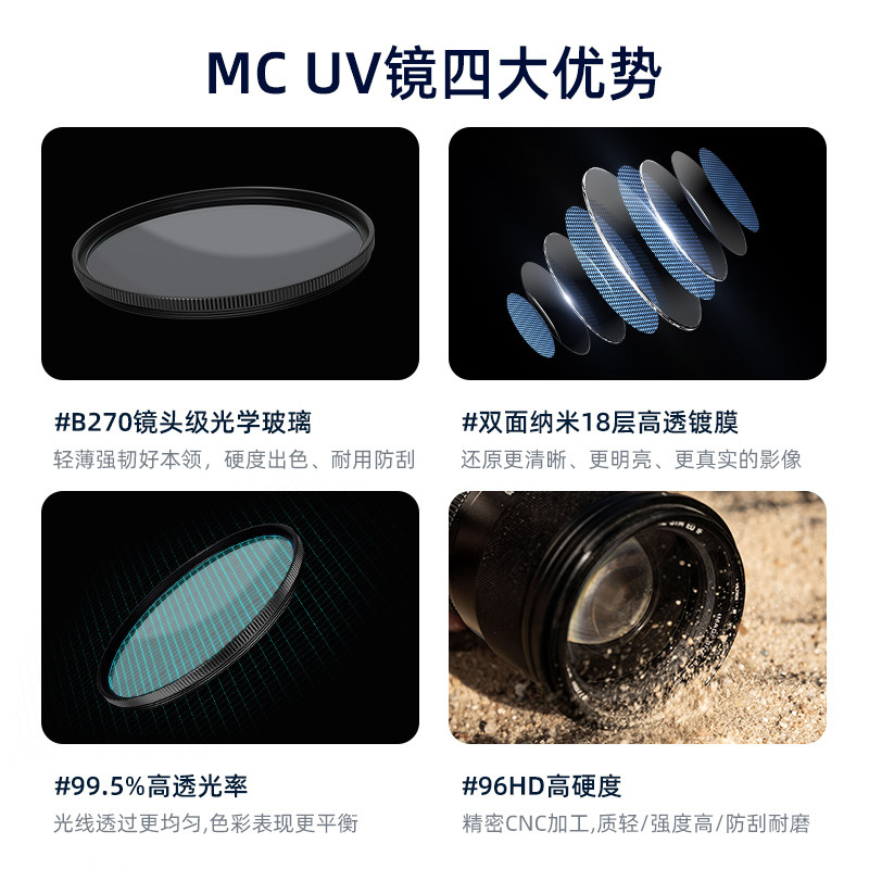 唯卓仕UV镜MC多层镀膜滤镜49/52/55/58/62/67/72/77/82/86/95mm适用于腾龙适马富士索尼佳能单反微单镜头