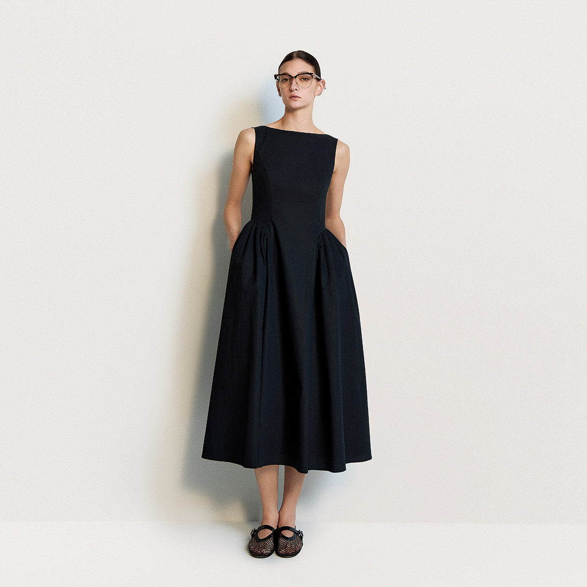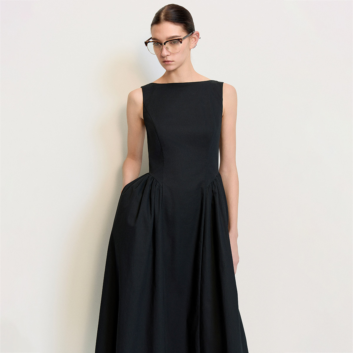 OCHIRLY欧时力 一字领露背A字无袖连衣裙裙子感高级夏季