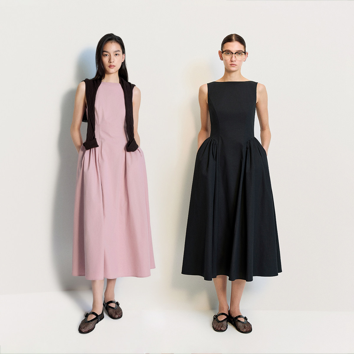 QY2 2026年春夏新款女装黑色无袖简约风格宽松版型连衣裙