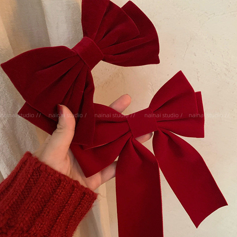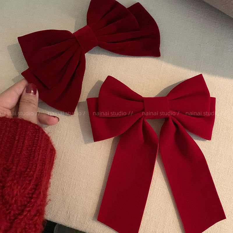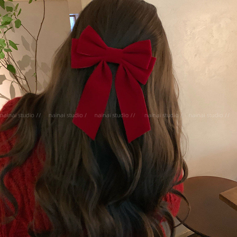 红色新年蝴蝶结发夹女过年法式后脑勺顶夹2025年新款儿童发饰头饰