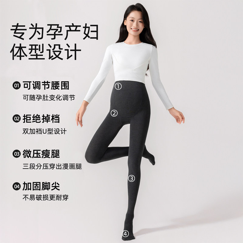 孕妇打底袜秋冬外穿保暖打底裤子不勒肚子加绒加厚孕期连裤袜白色