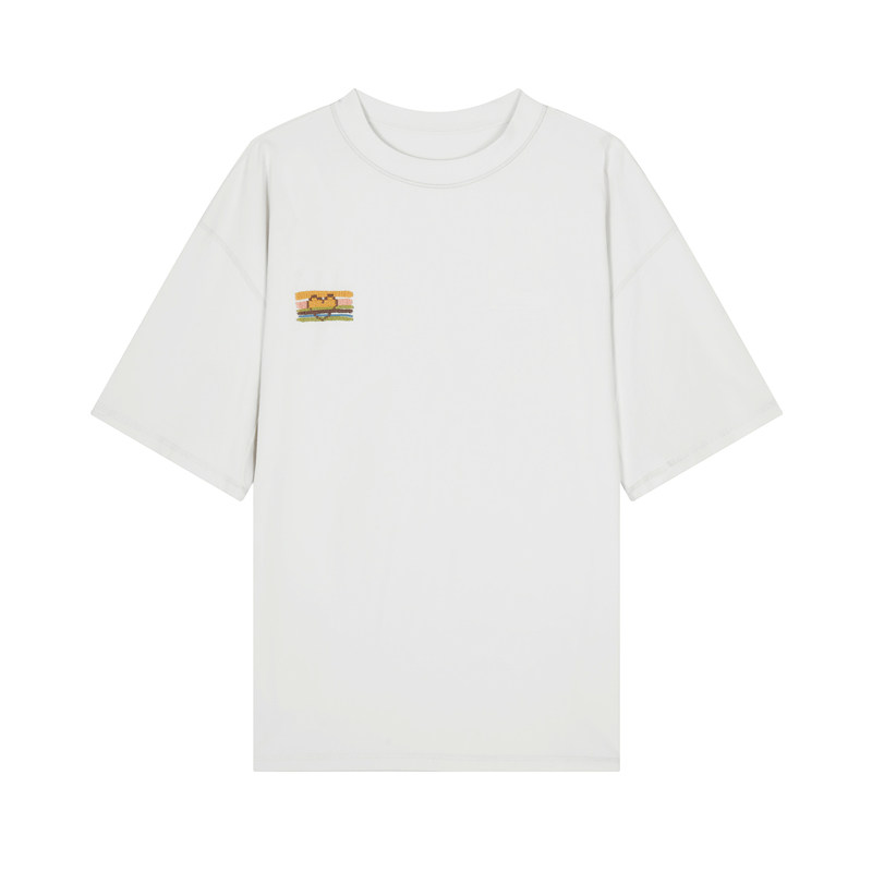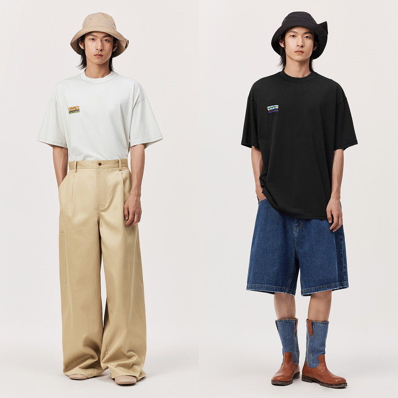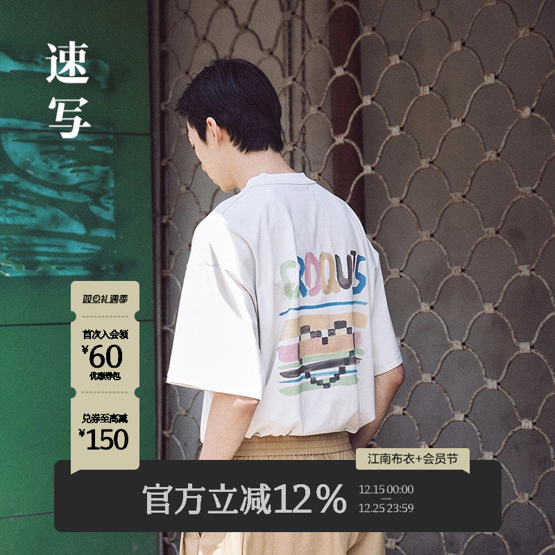 速写男装夏季新款刺绣T恤圆领短袖休闲潮流时尚前卫简约设计上衣