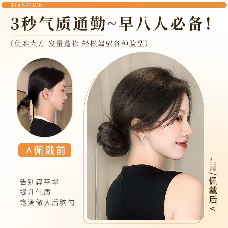 真发低丸子头假发发圈盘发发包古风假发包花苞头蓬松神器发丝卷发