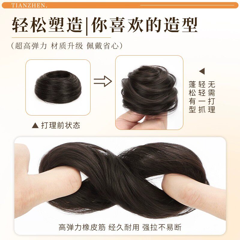 低扎丸子头假发鸡毛头抓夹盘发发包慵懒感造型头饰自然蓬松后脑勺
