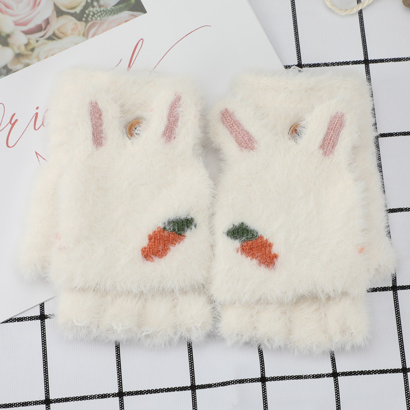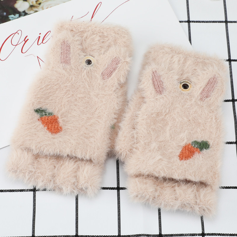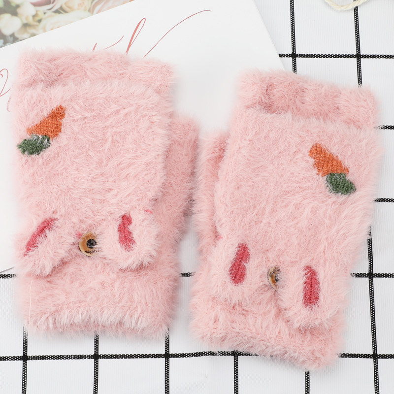 手套女冬天加厚保暖半指可爱韩版百搭卡通潮ins加绒学生网红手套