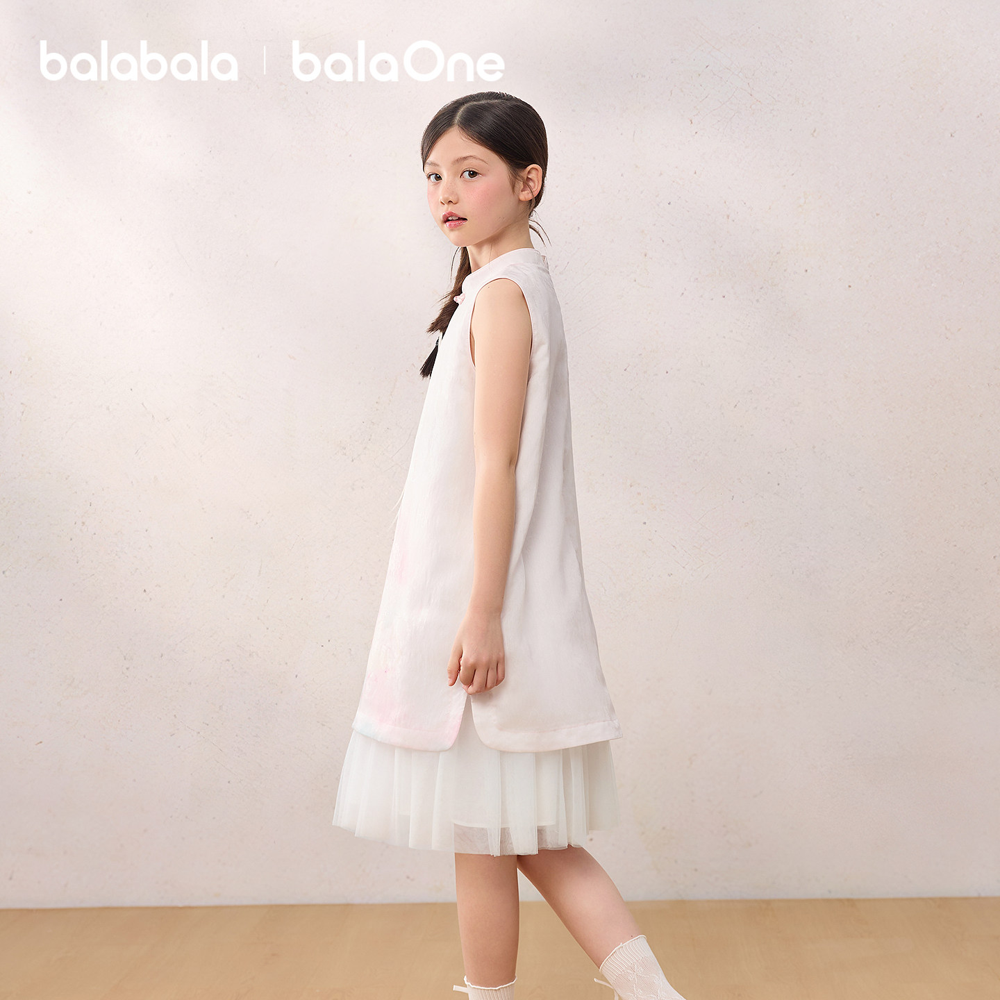 巴拉巴拉童装女童裙子儿童连衣裙2026夏新款新中式旗袍裙拼接网纱