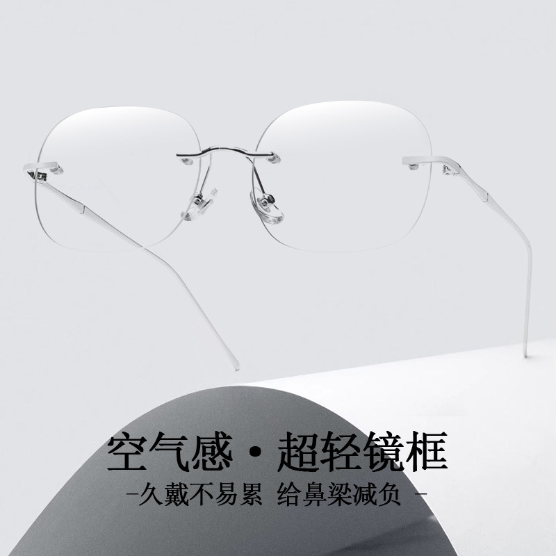目戏无框眼镜女近视可配度数可选蔡司镜片无边框眼镜框镜架23006