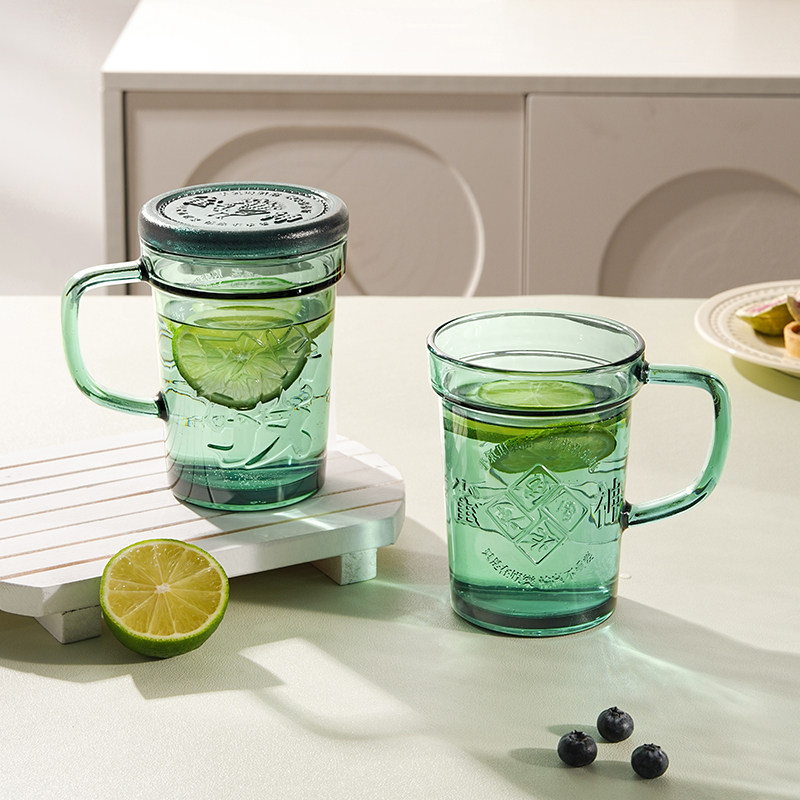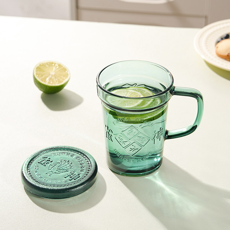 乐唯诗雀神发财杯玻璃杯办公室泡茶杯墨绿玻璃水杯家用咖啡高颜值
