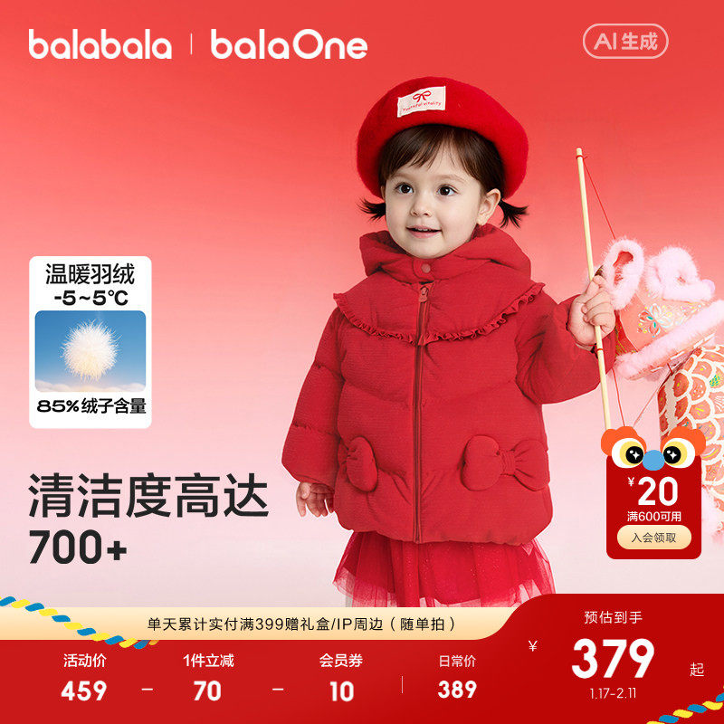 【商场同款】巴拉巴拉婴儿宝宝羽绒服男童冬季女童短款红色拜年服