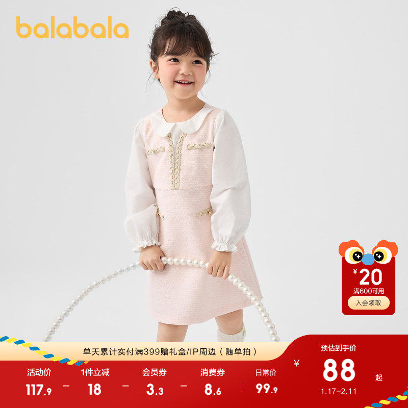 巴拉巴拉童装女童连衣裙春秋儿童小香风假两件裙子洋气潮甜美宝宝