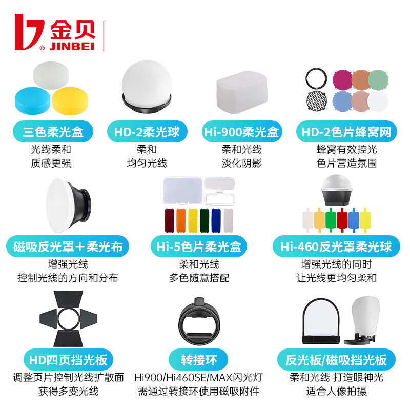 金贝HD-2MAX/HD-2pro/HD-1/Hi900/Hi460/Hi5/H1机顶灯附件柔光球蜂窝色片反光罩四页挡板反光板柔光箱