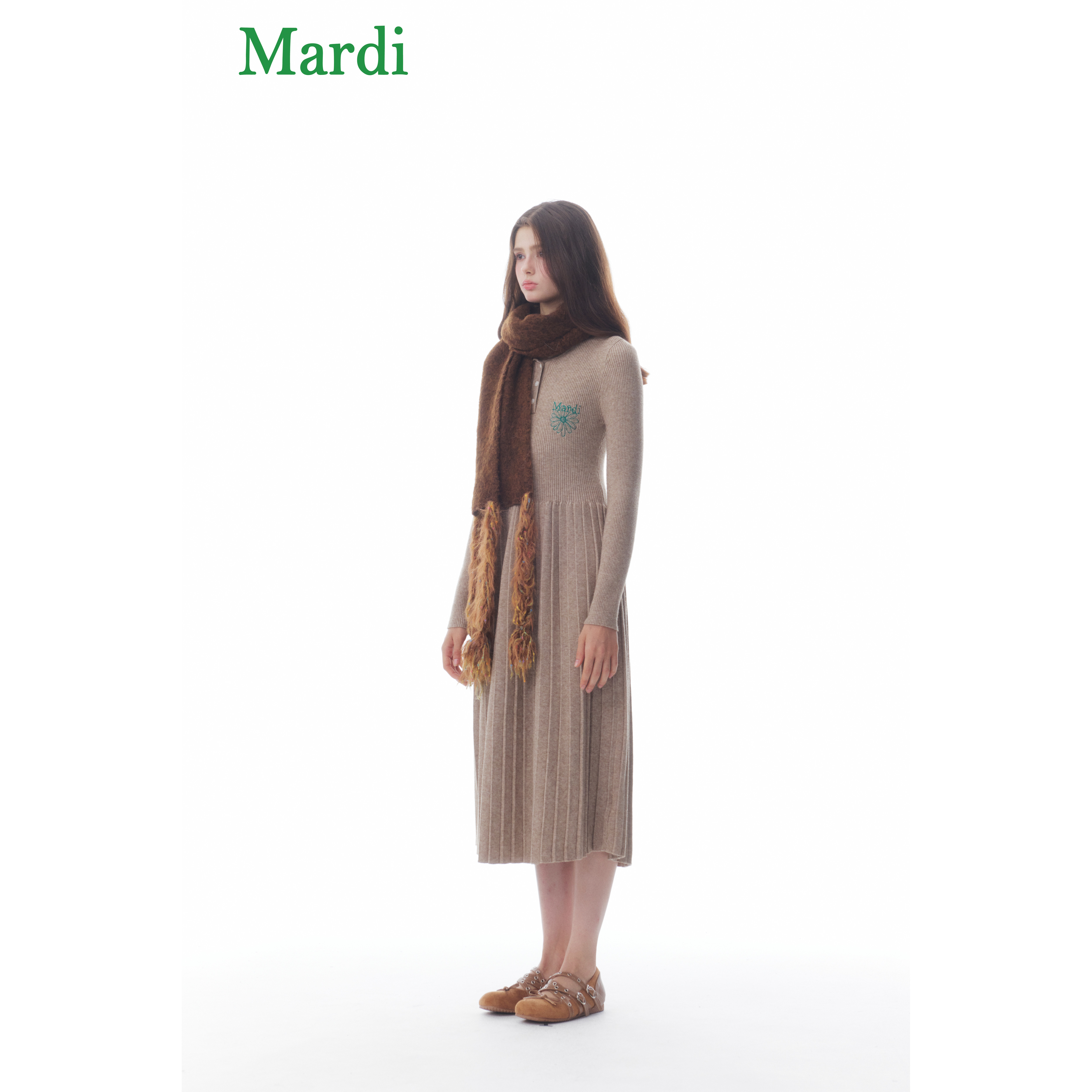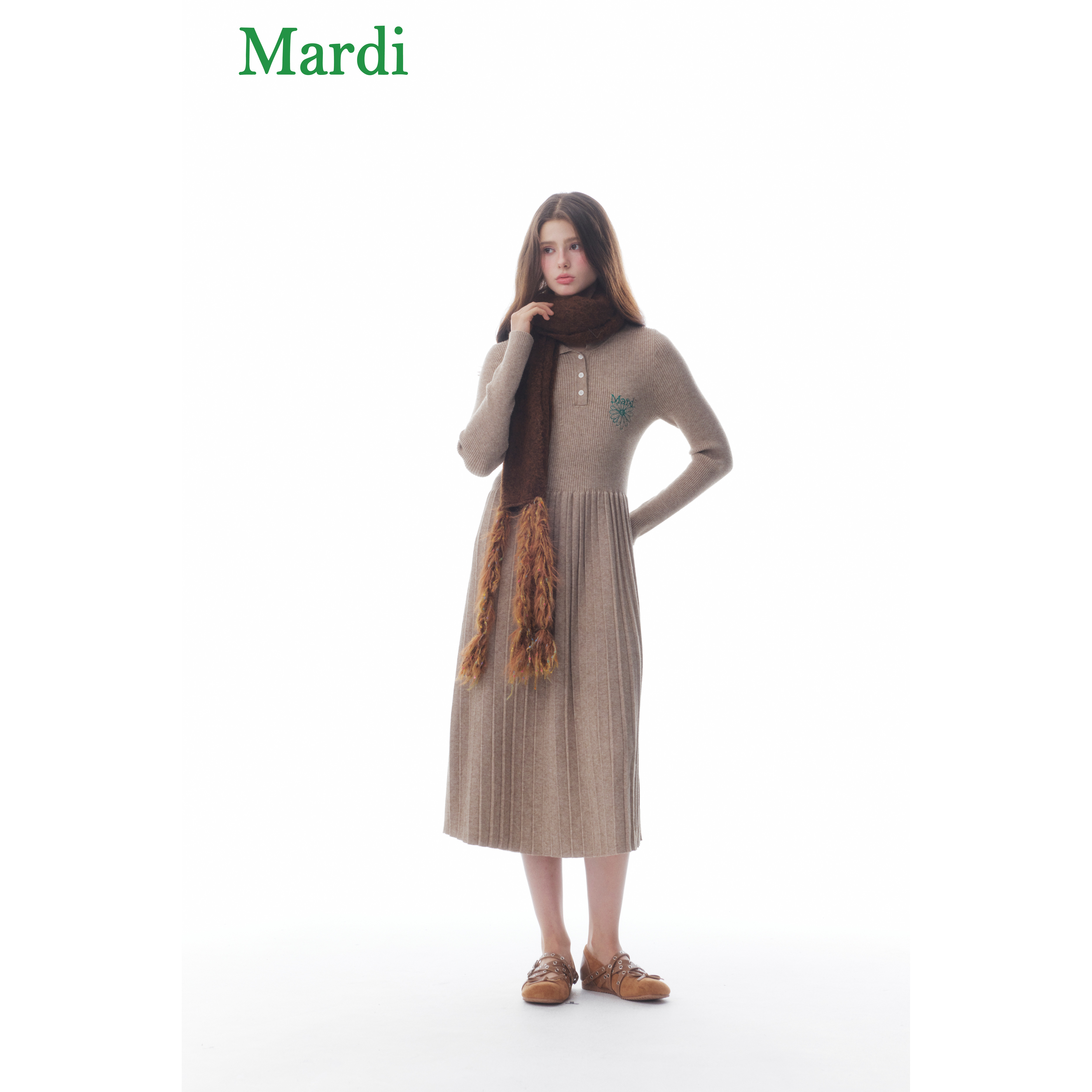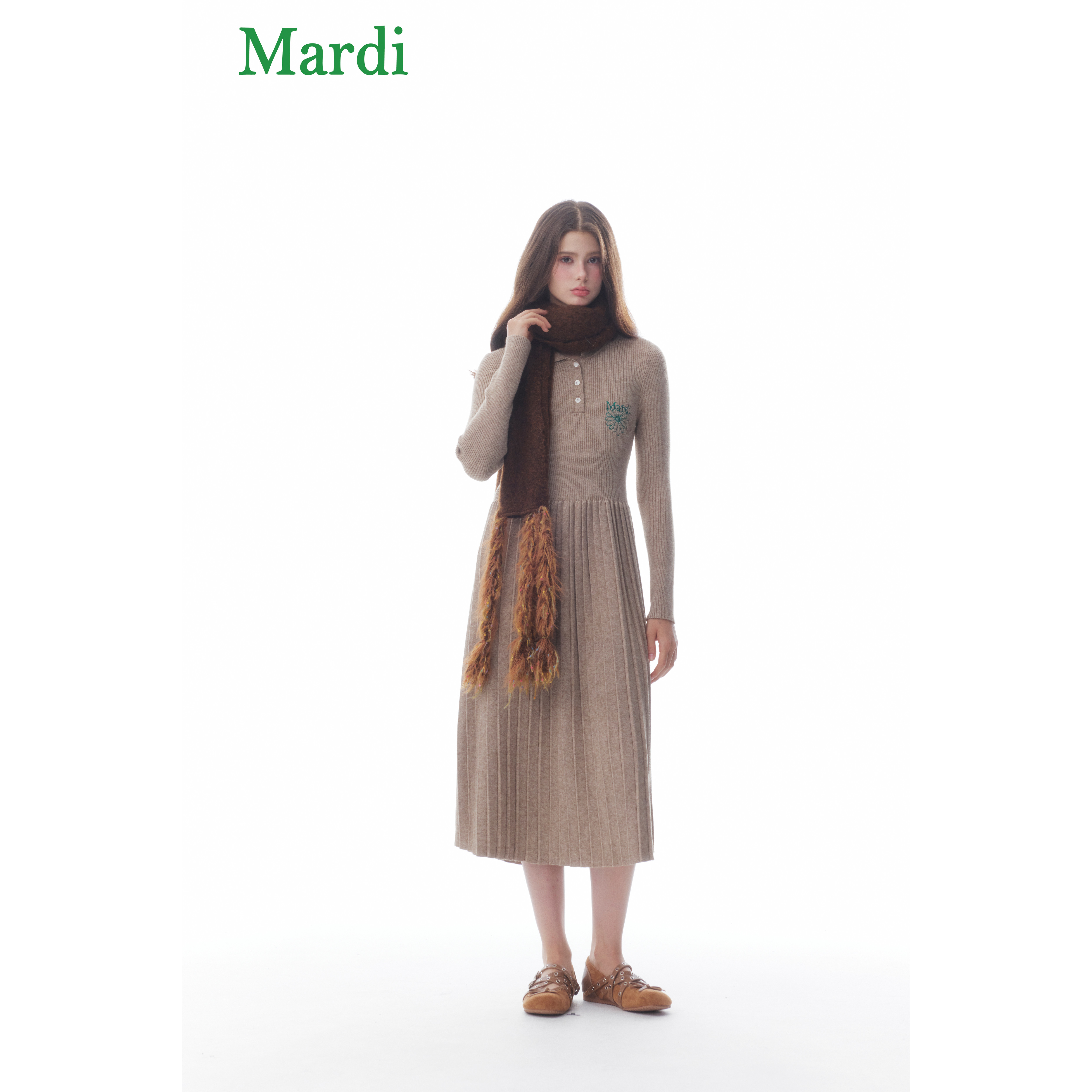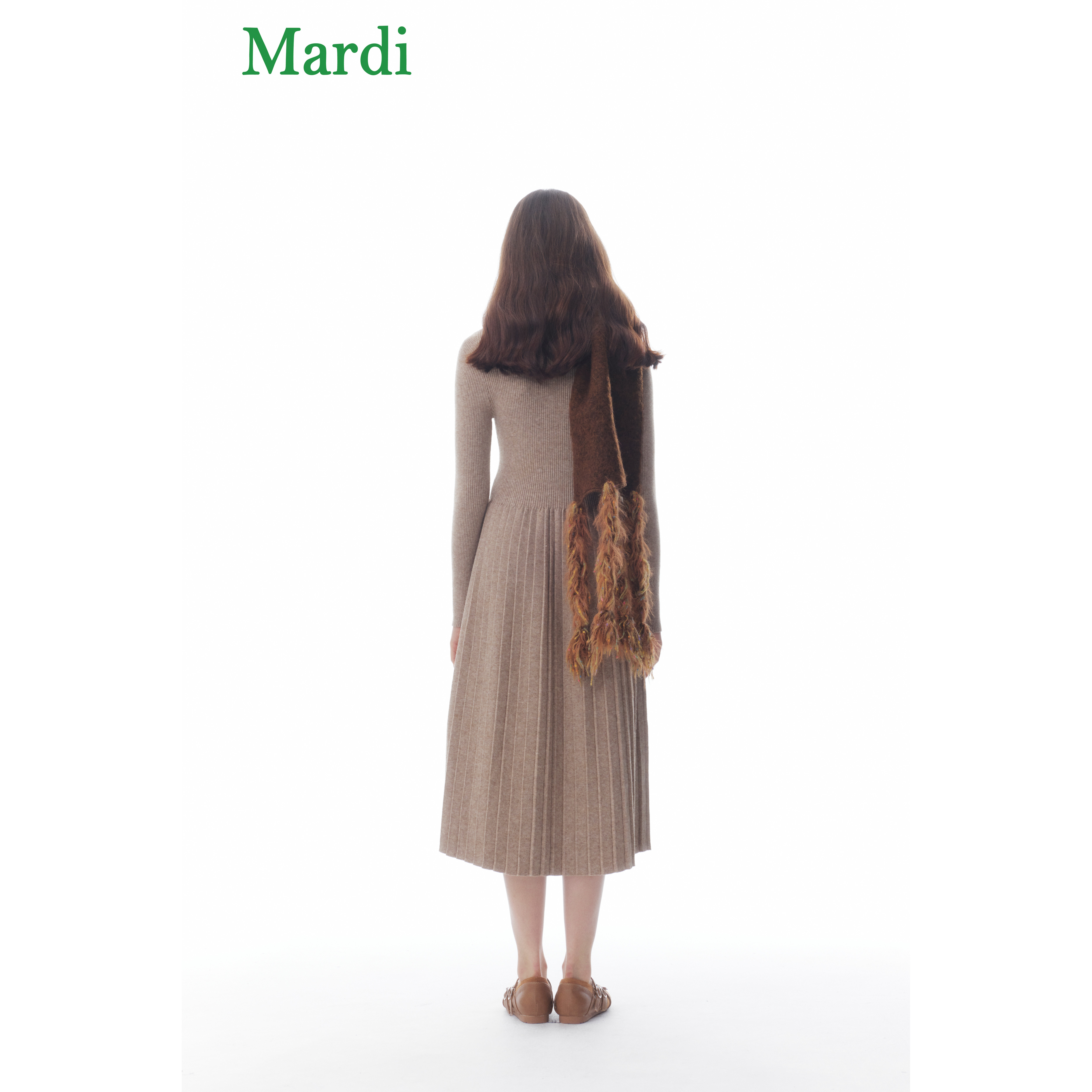 MARDI针织连衣裙女春季新款长袖百褶中长款时尚气质显瘦打底裙子