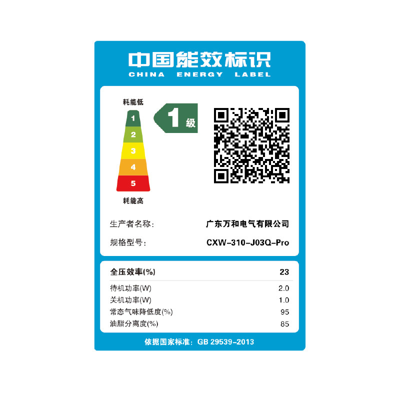 万和CXW-310-J03Q-Pro侧吸式油烟机 23m³大吸力 易拆洗 挥手感应