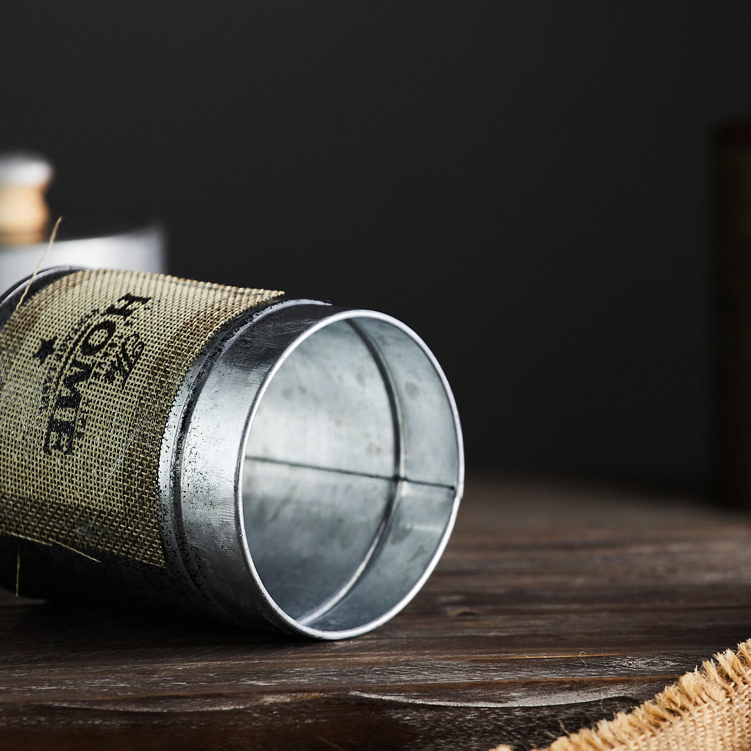 ins风复古做旧欧式贴麻布铁艺收纳罐圆桶带盖五谷杂粮储物罐 道具