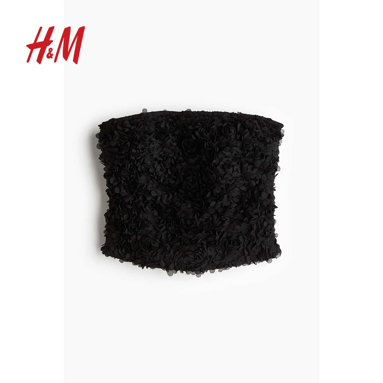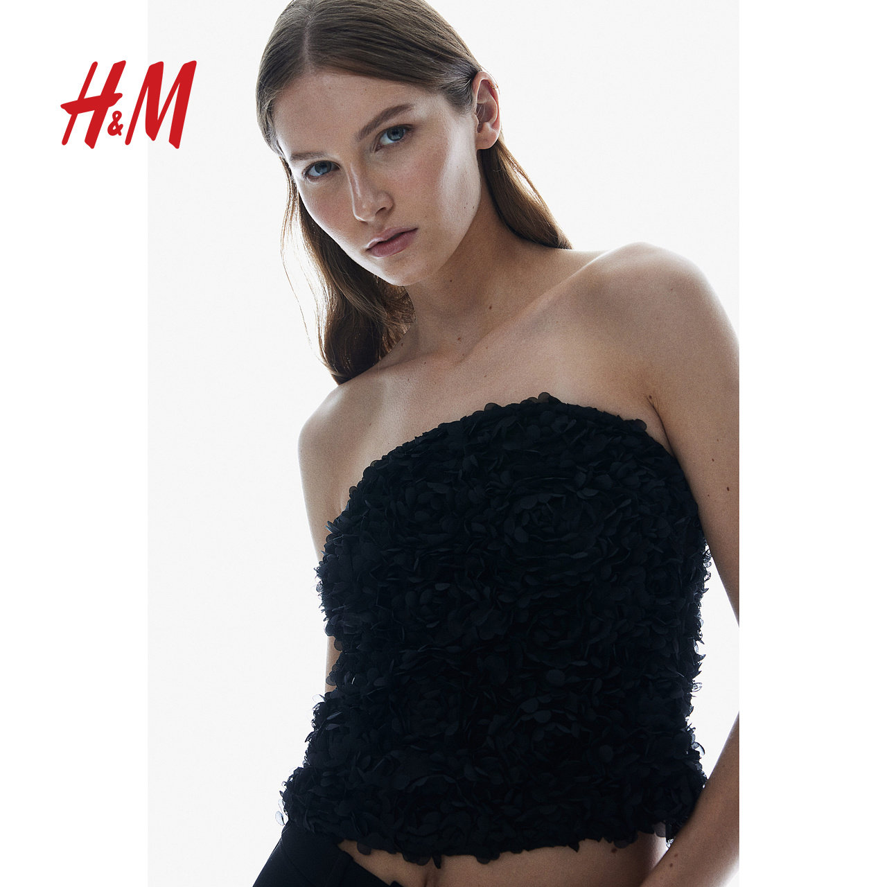 HM冬季女装时尚休闲休闲布贴抹胸式上衣1266569