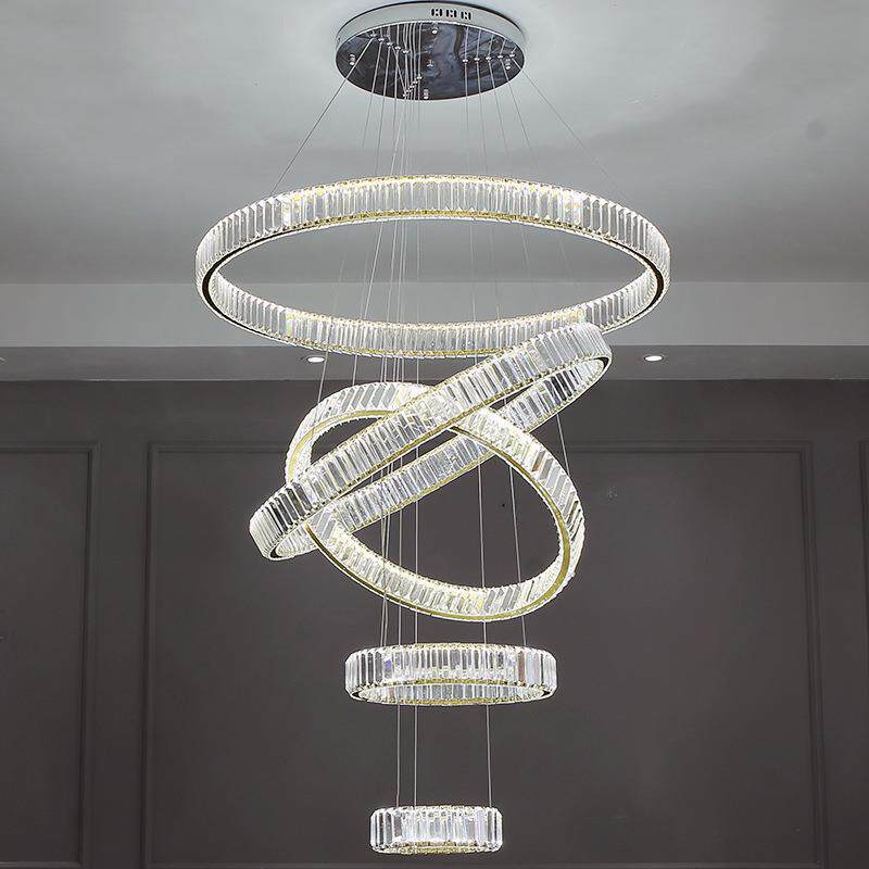 轻奢水晶吊灯复式楼别墅酒店大厅餐厅客厅卧室工程圈环楼梯间主灯