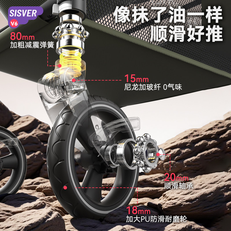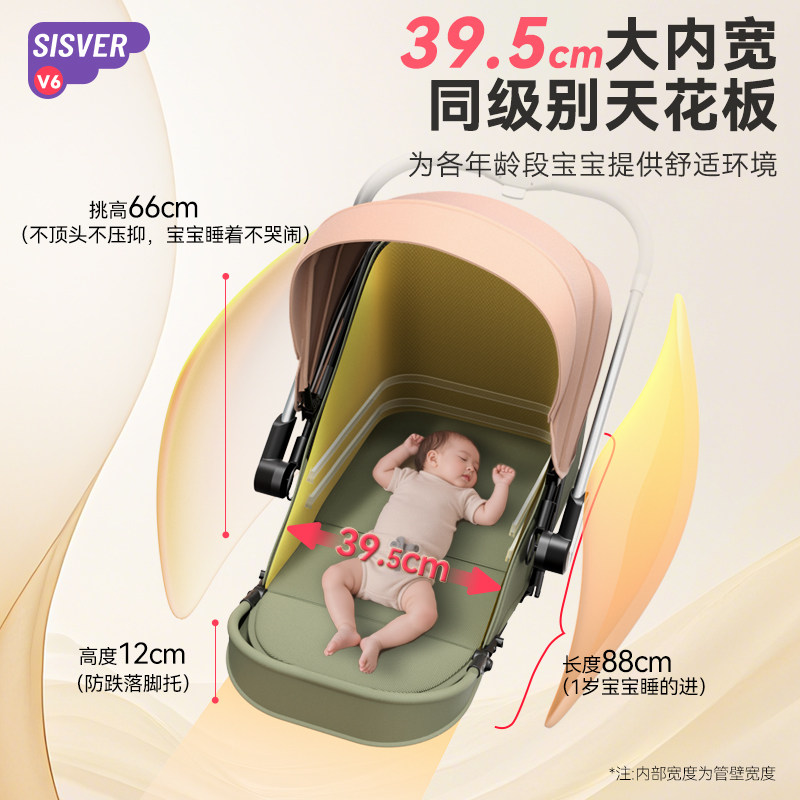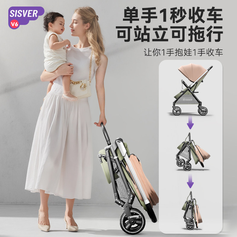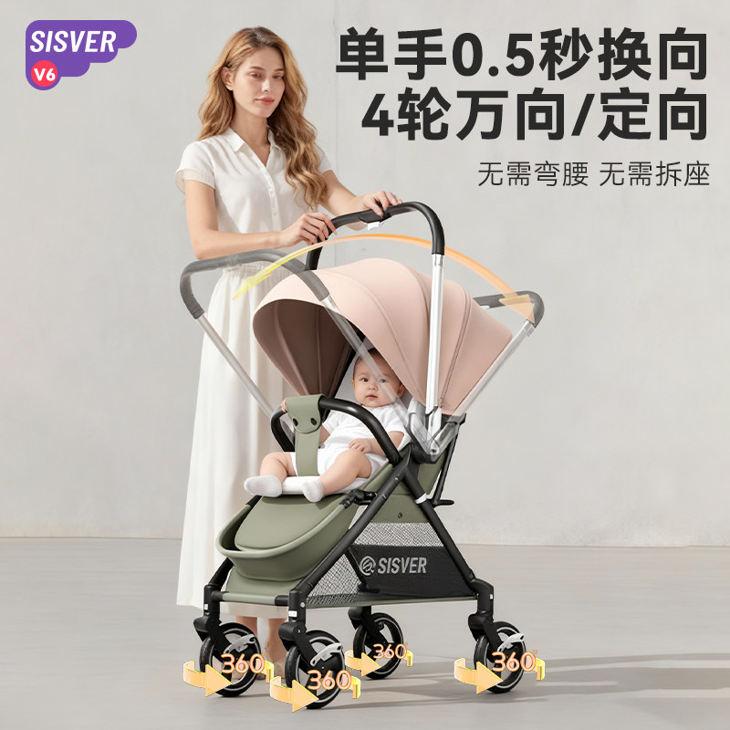 SISVER可坐可躺双向高景观一键折叠轻便0到3岁宝宝新生婴儿推车V6