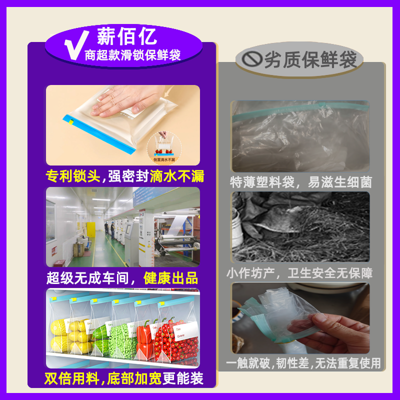 保鲜袋自封袋密封食品冰箱收纳专用袋子带封口自封袋家用分装塑封