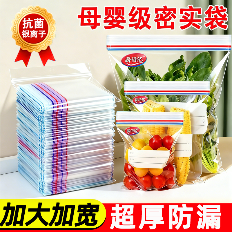 食品级保鲜袋密封袋家用冰箱专用冷冻自封袋水果零食收纳袋拉链式