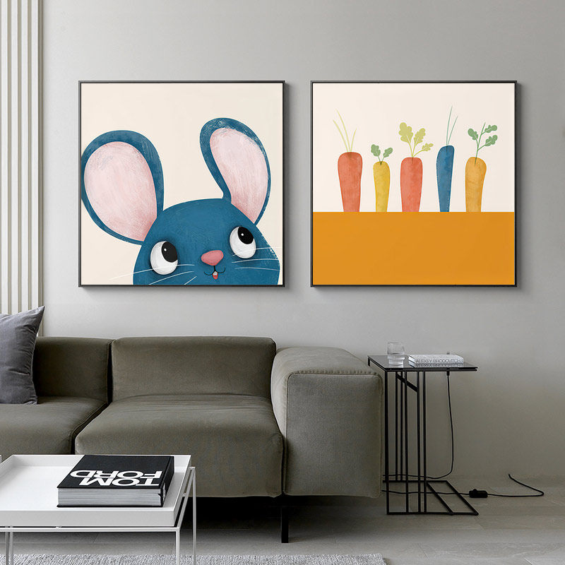 萌宠 北欧现代客厅装饰画小众轻奢卧室床头挂画卡通壁画餐厅墙画