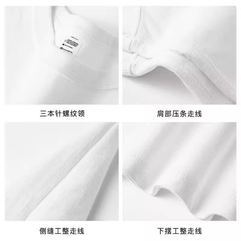 三本针 500G重磅纯棉长袖t恤男女新疆棉小圆领卫衣胖子大码打底衫