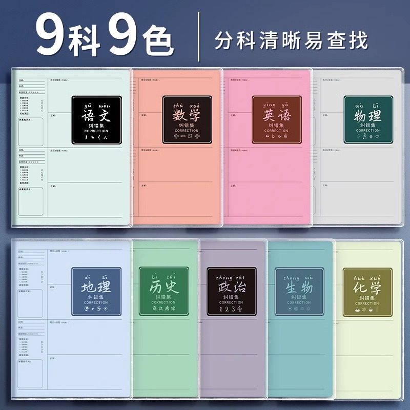 错题本初中生学习必备用品改错本小学生错题整理本各科笔记本加厚b5高中生纠错本子语文数学英语一年级三年级