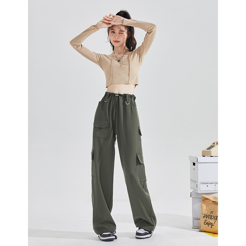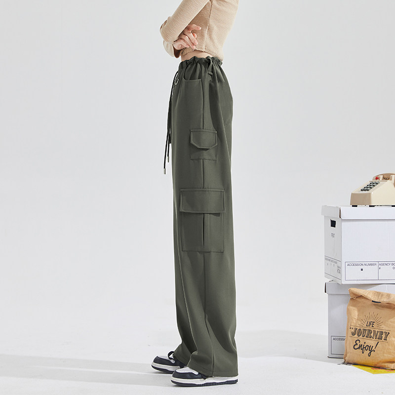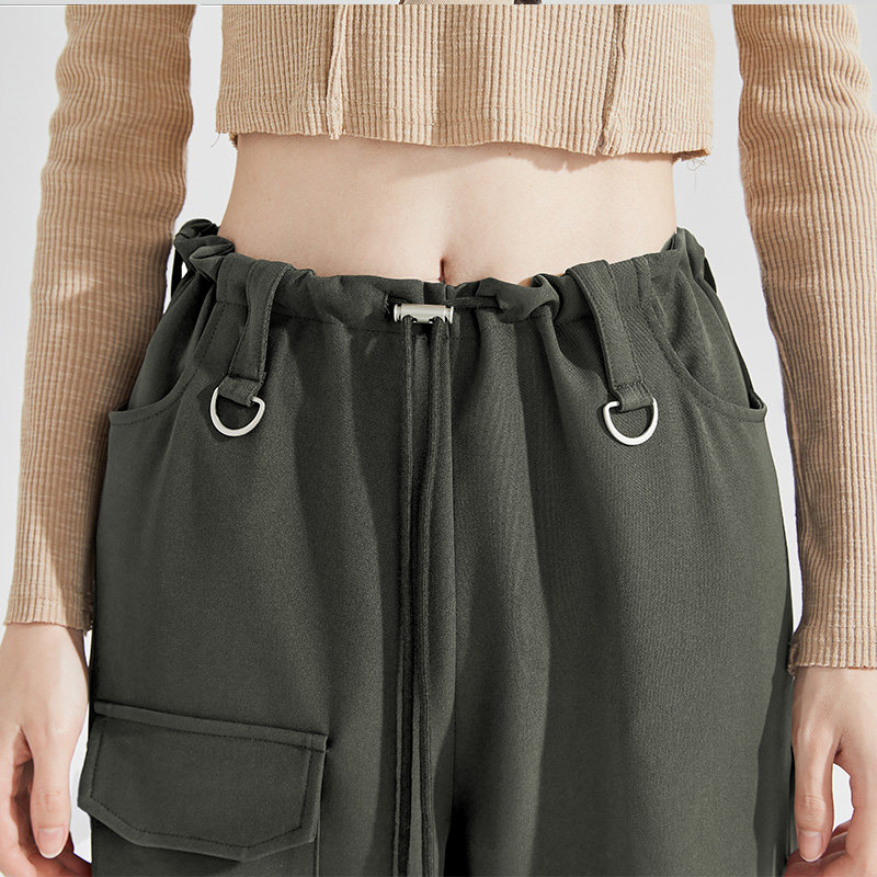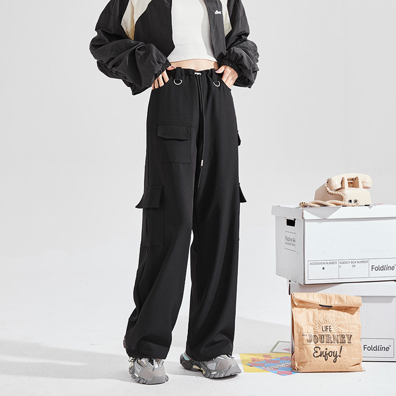 唐狮美式复古辣妹宽松口袋裤春夏季黑色显瘦阔腿休闲工装裤子女
