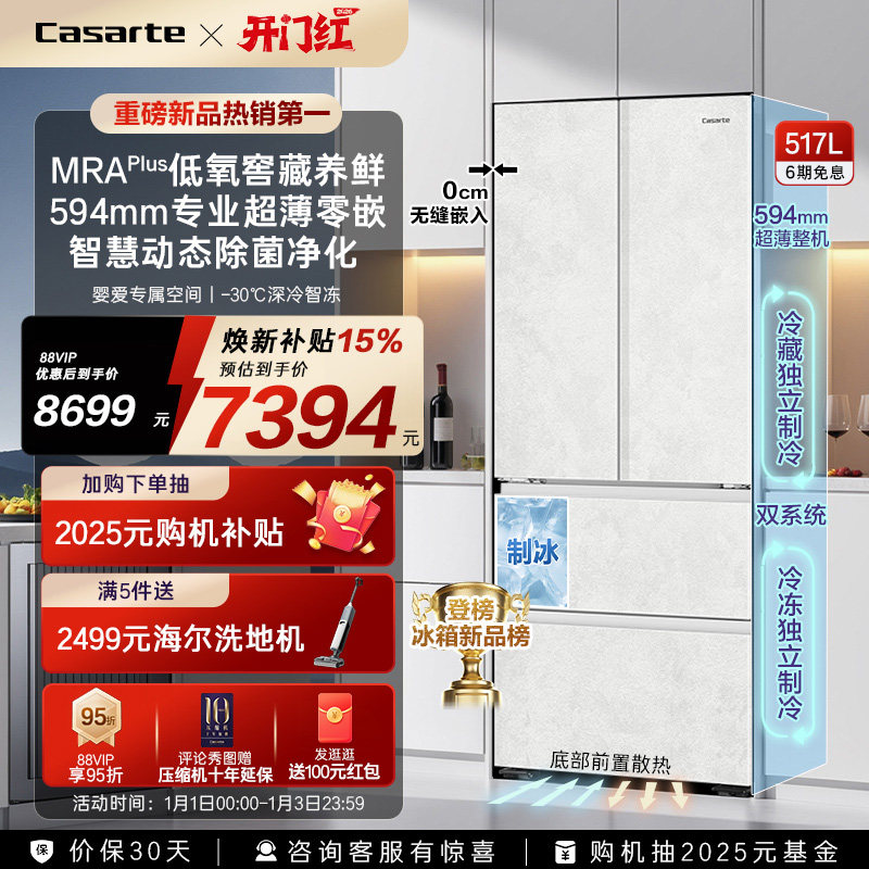 [重磅新品]卡萨帝517L制冰超薄零嵌入式四门风冷无霜家用电冰箱