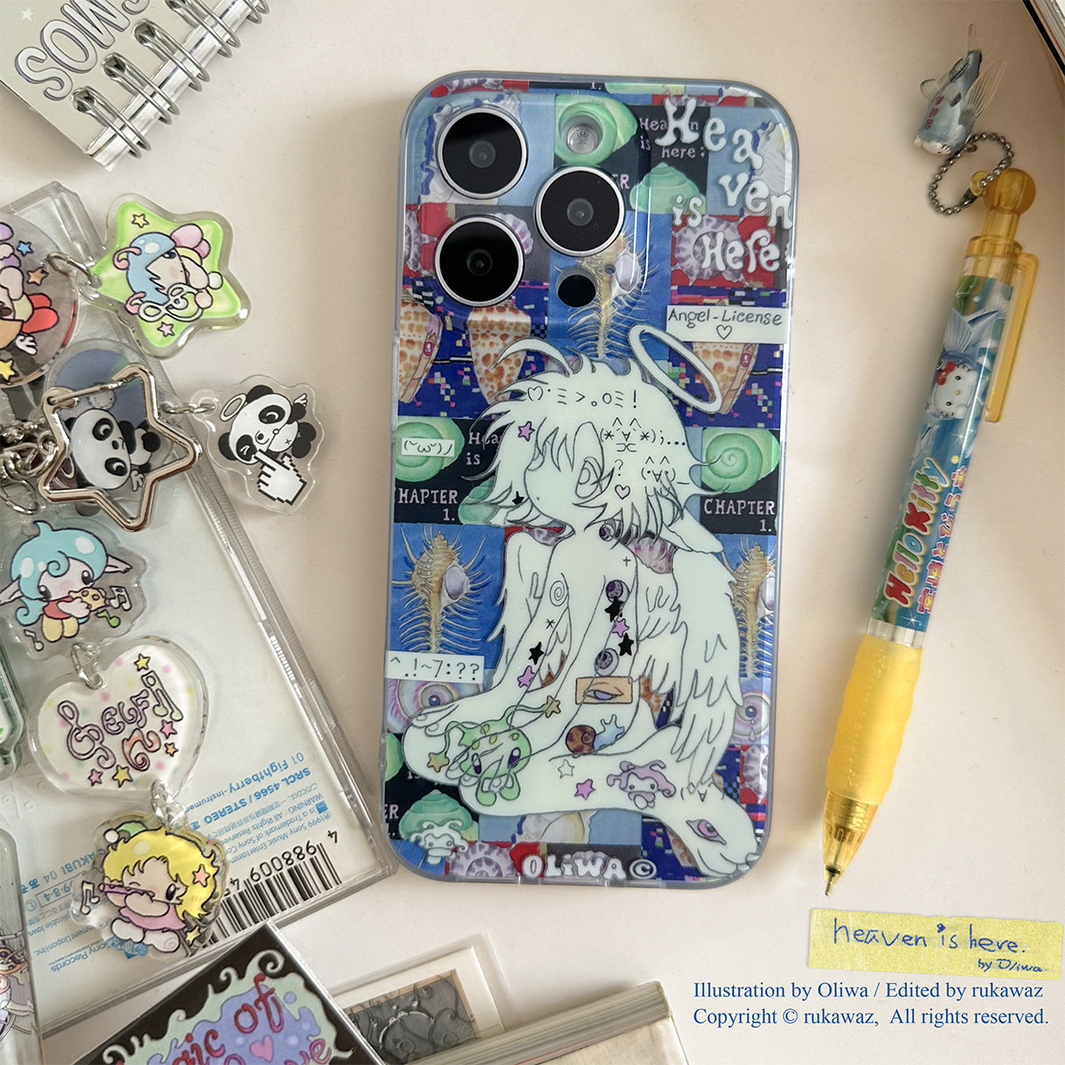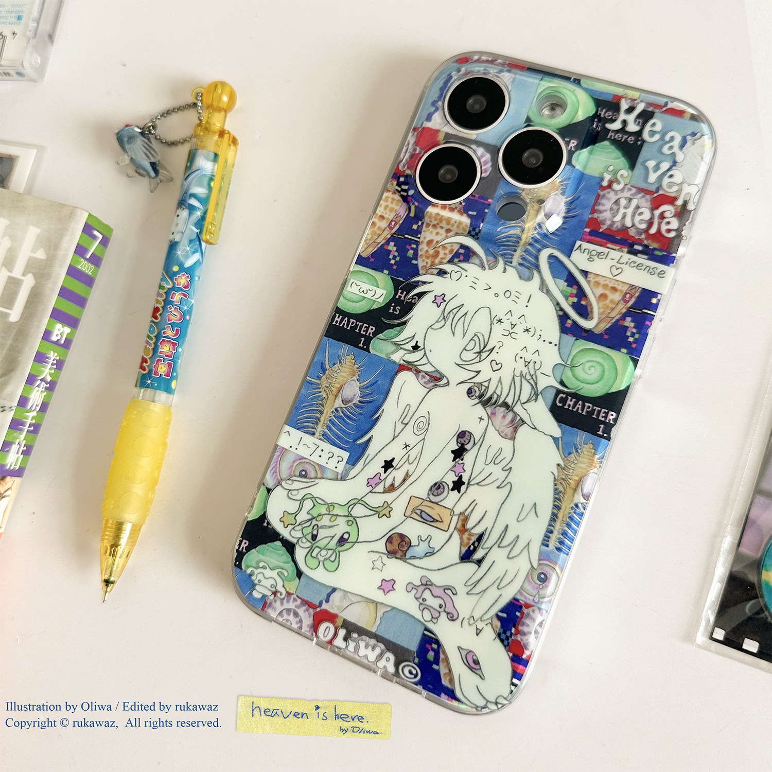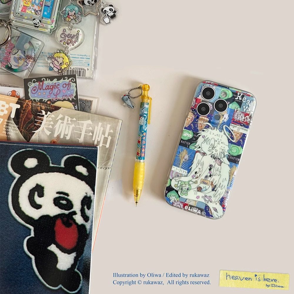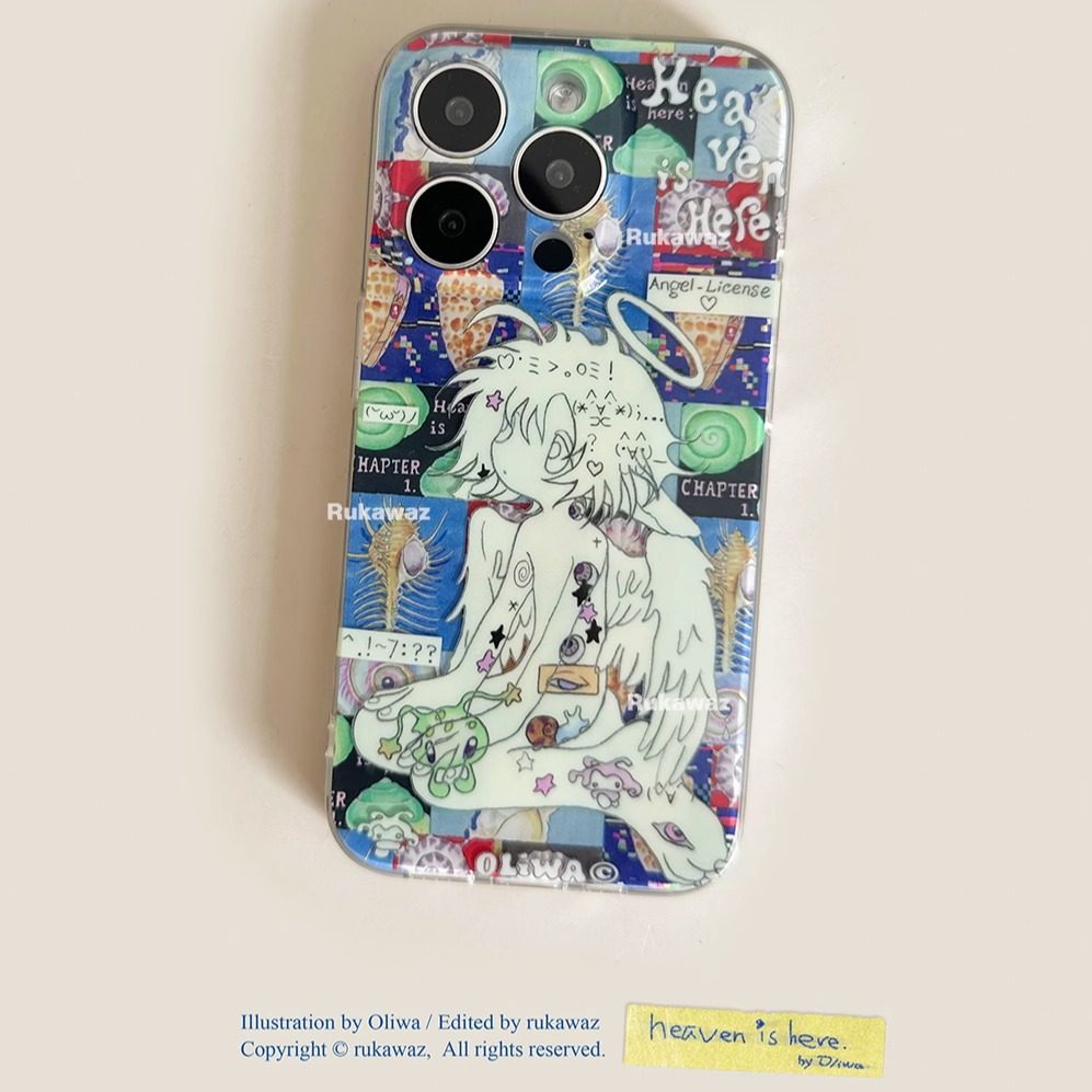 RUKAWAZxOliwa奥莉蛙联名原创可爱动漫复古颜文字天使适用于iPhone苹果17/promax/16/15精孔双层imd手机壳