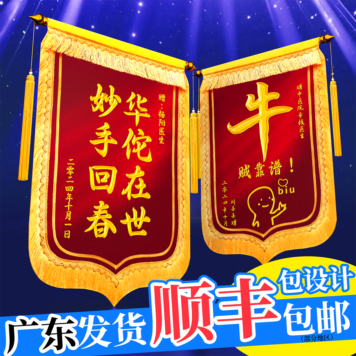 高档锦旗定做定制感谢医生老师教师服务物业管家赠送月嫂教练旗帜制作红娘搞笑旌旗订做高端镀金大小尺寸旗子