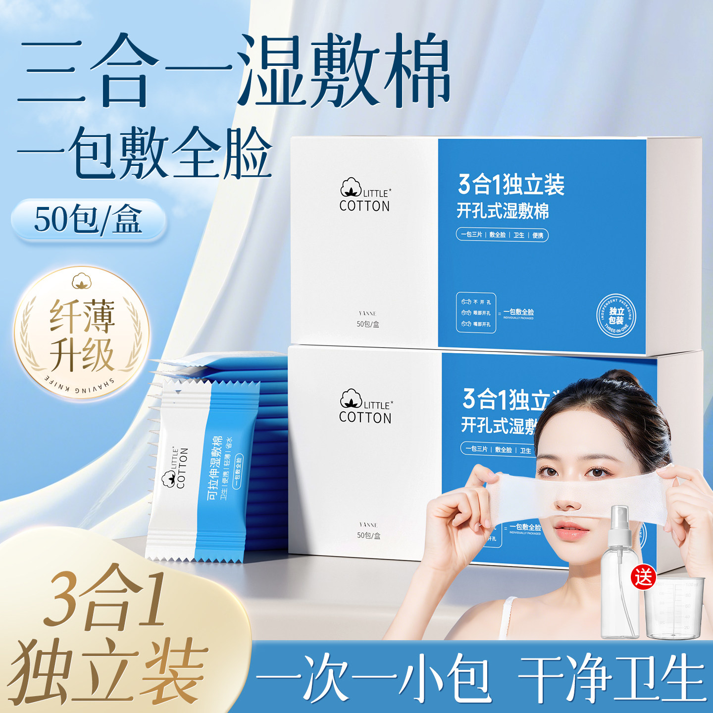 三合一可拉伸湿敷棉敷脸专用独立装开孔式脸部眼部超薄面膜化妆棉