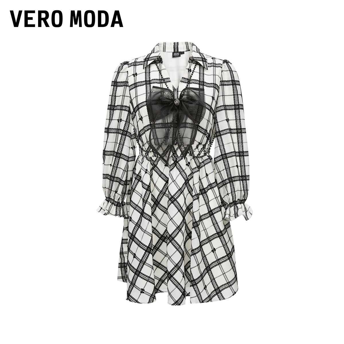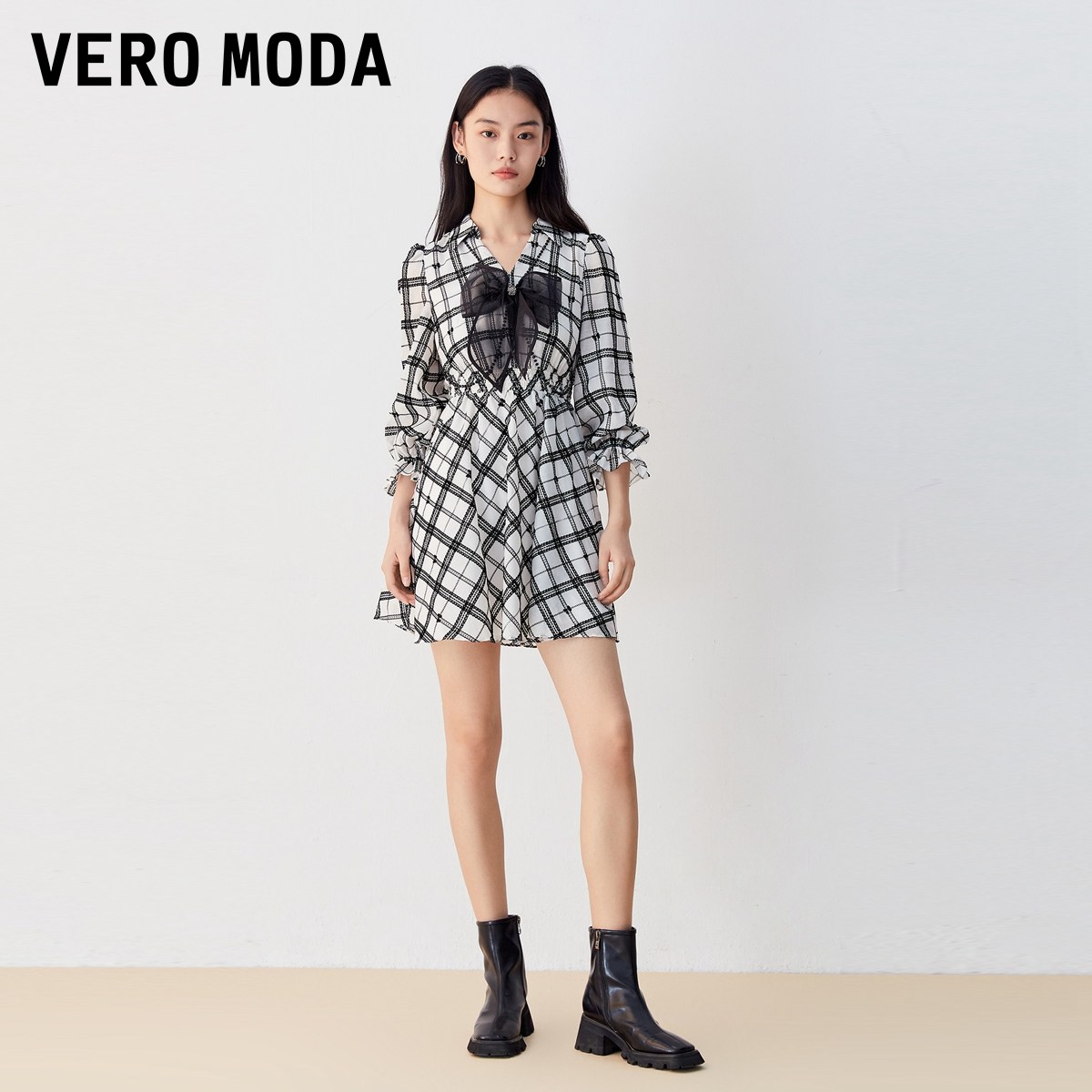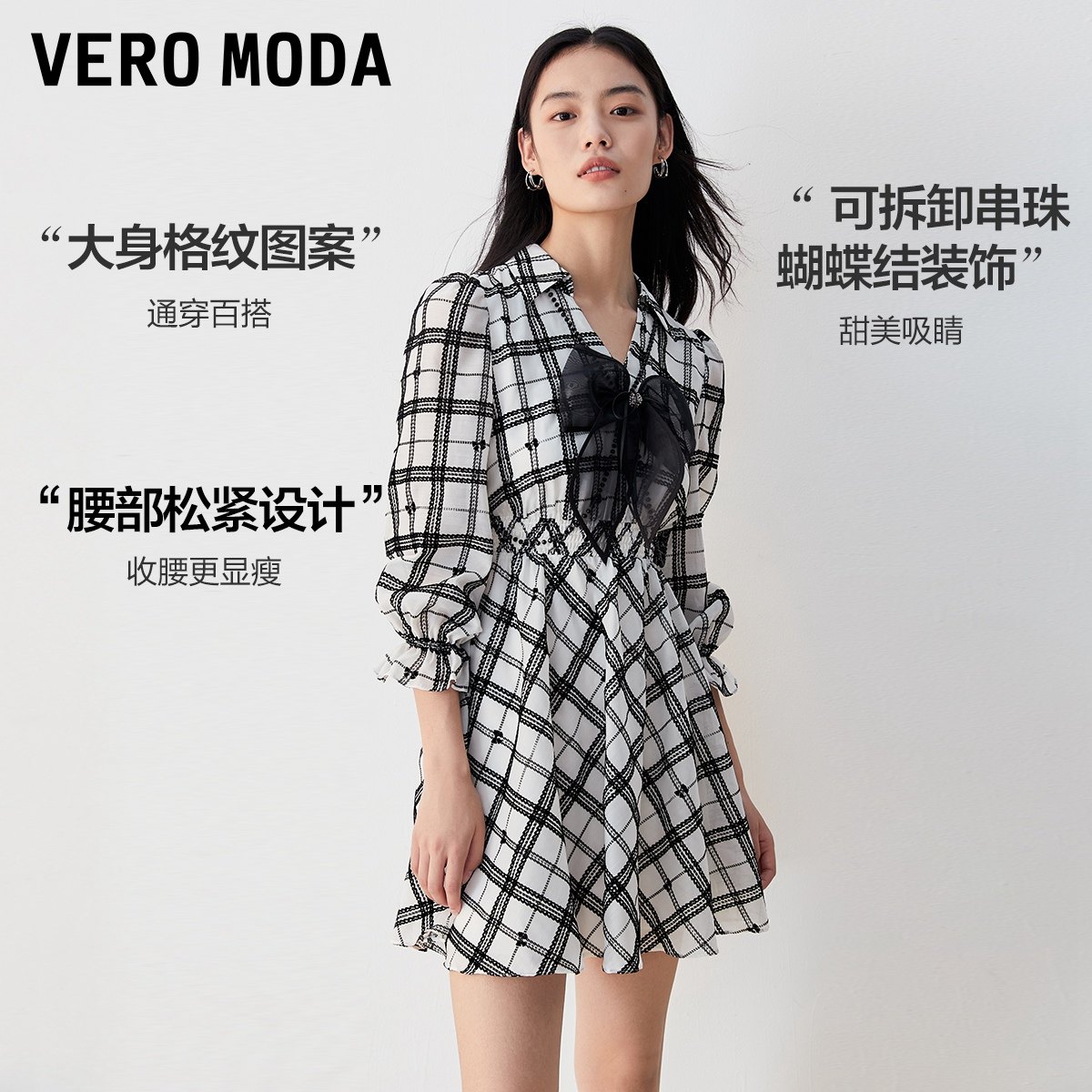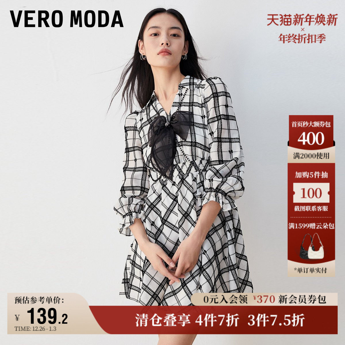 Vero Moda奥莱连衣裙子秋冬清仓优雅气质甜美七分袖蝴蝶结女百搭