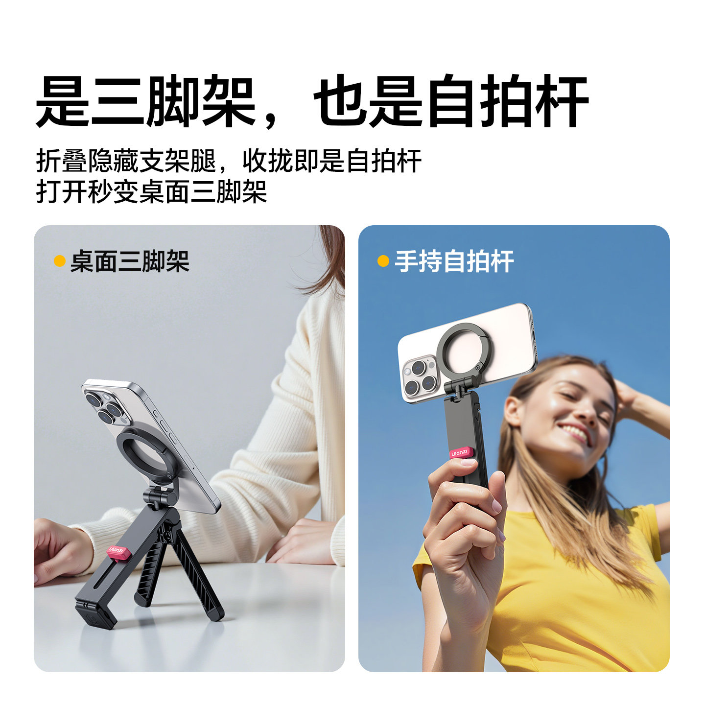 Ulanzi优篮子 MA88磁吸高铁飞机旅行手机支架magsafe桌夹便携桌面座椅固定夹火车桌板固定拍摄支撑架三脚架