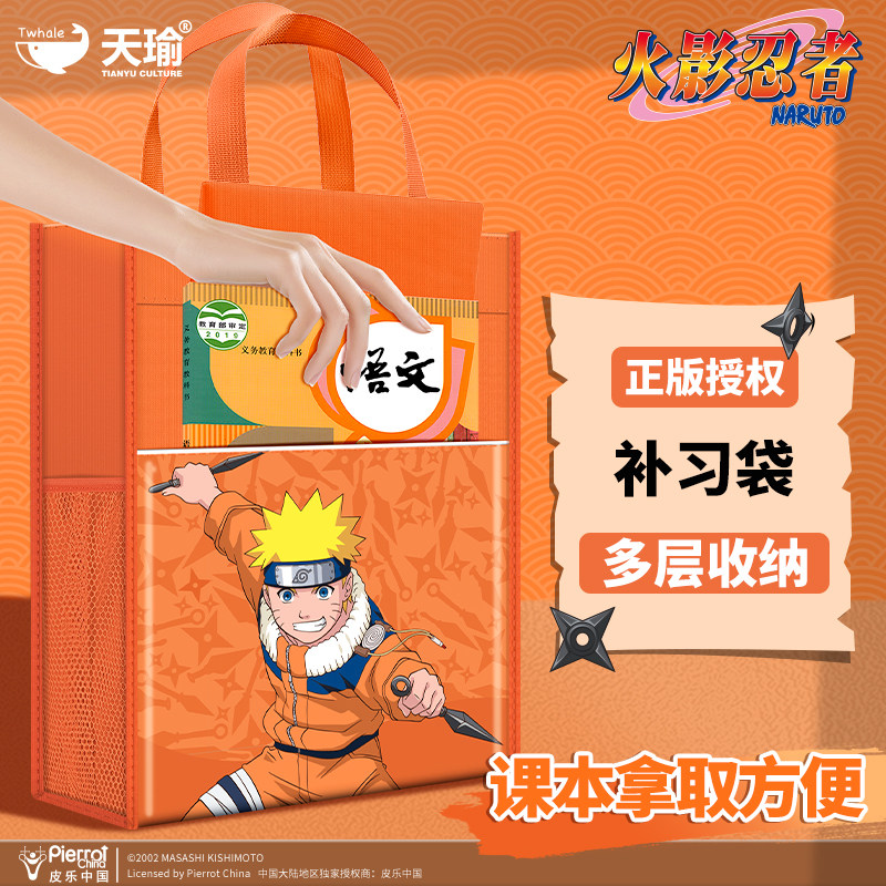 火影忍者补习袋初中生大容量手提拎书袋漩涡鸣人试卷袋语数英科目分类袋拉链式作业袋男孩高颜值补课包高级感