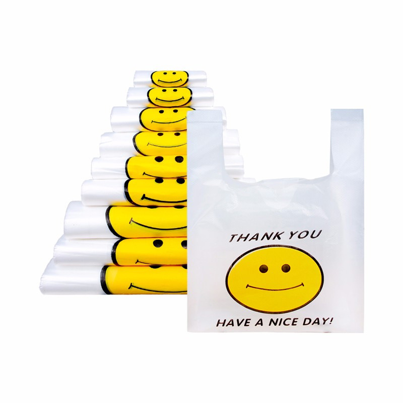 笑脸塑料袋透明购物袋打包加厚手提袋批发小白袋食品级外卖特大号
