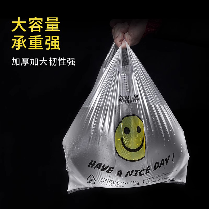 笑脸加厚透明塑料袋外卖垃圾袋商用打包袋购物袋方便手提袋子食品