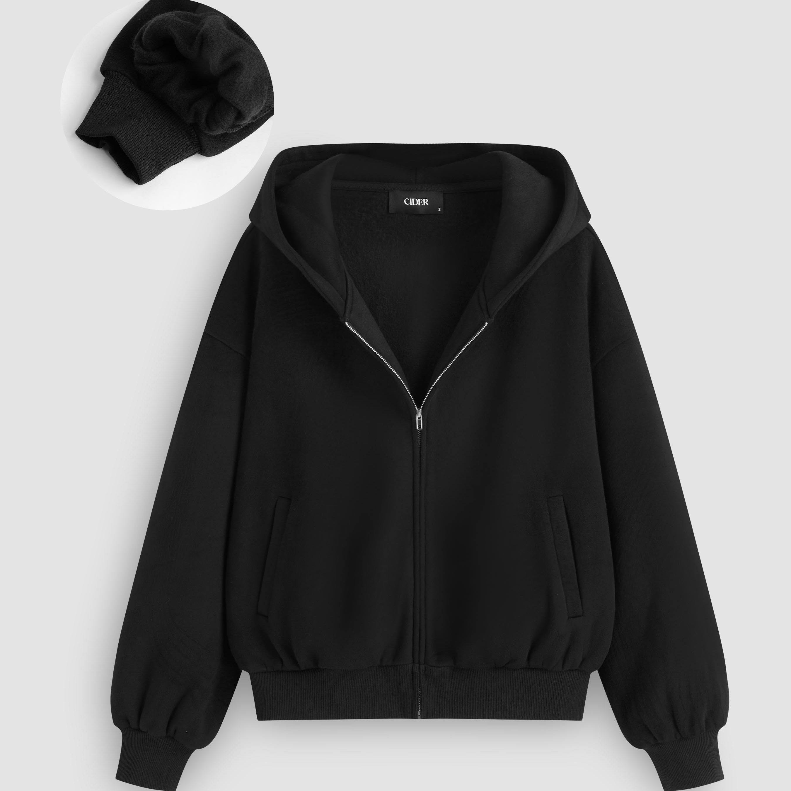 CIDER 秋冬新品女装羊羔绒软触感拉链连帽衫114034723