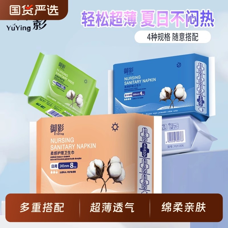 御影超薄卫生巾瞬吸干爽全棉表层日用夜用组合柔感护理姨妈巾临期