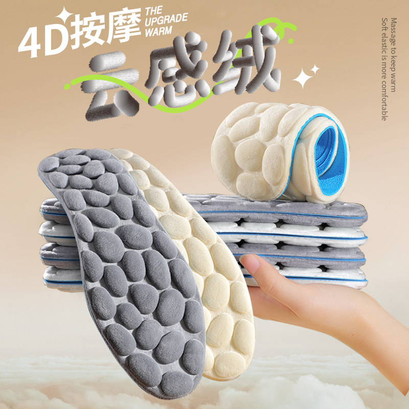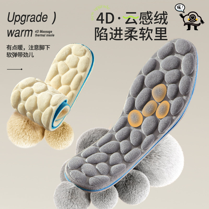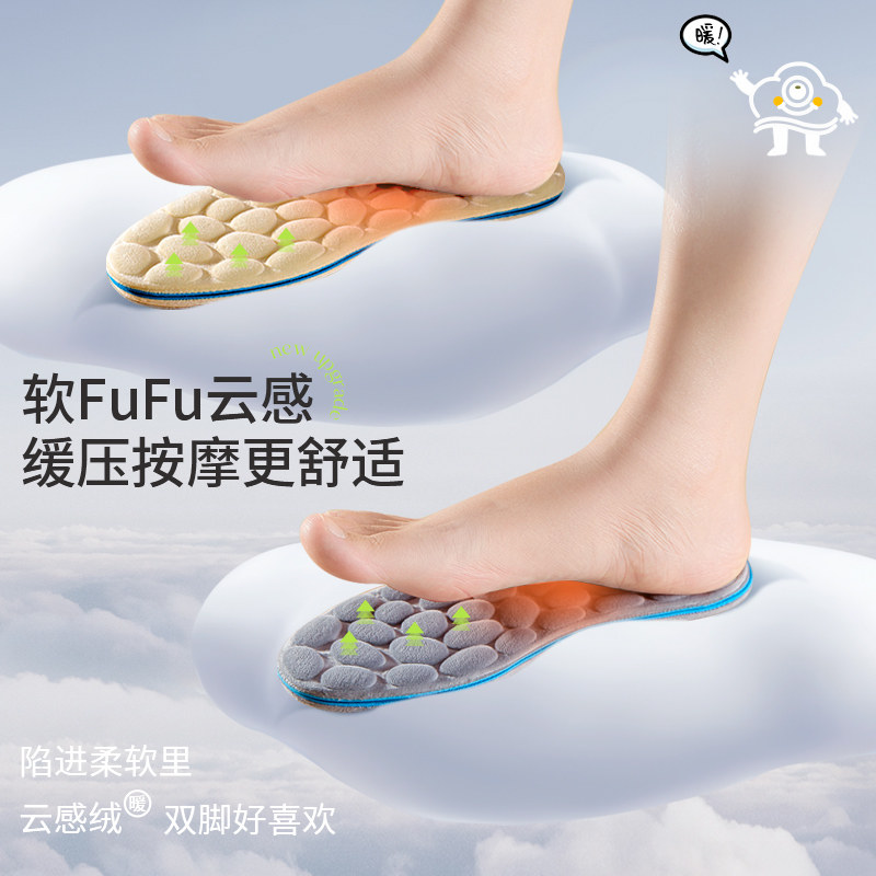 超软4D云感保暖鞋垫男士女吸汗防臭加绒加厚踩屎感羊毛棉鞋垫冬季