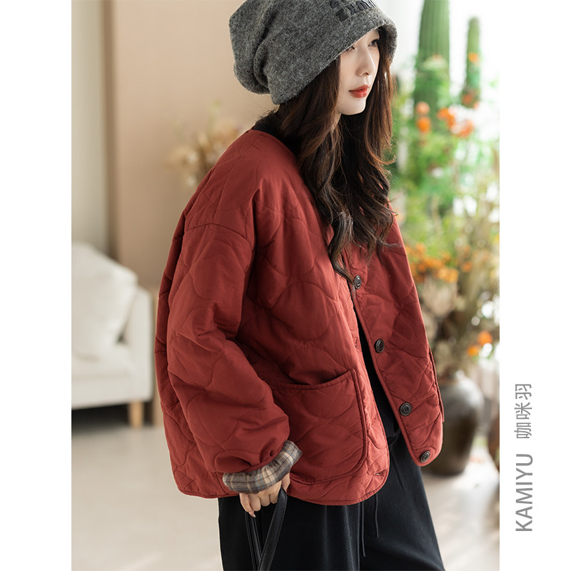 咖咪羽棉服女冬季新款女士上衣百搭宽松洋气时尚流行棉麻女款棉衣