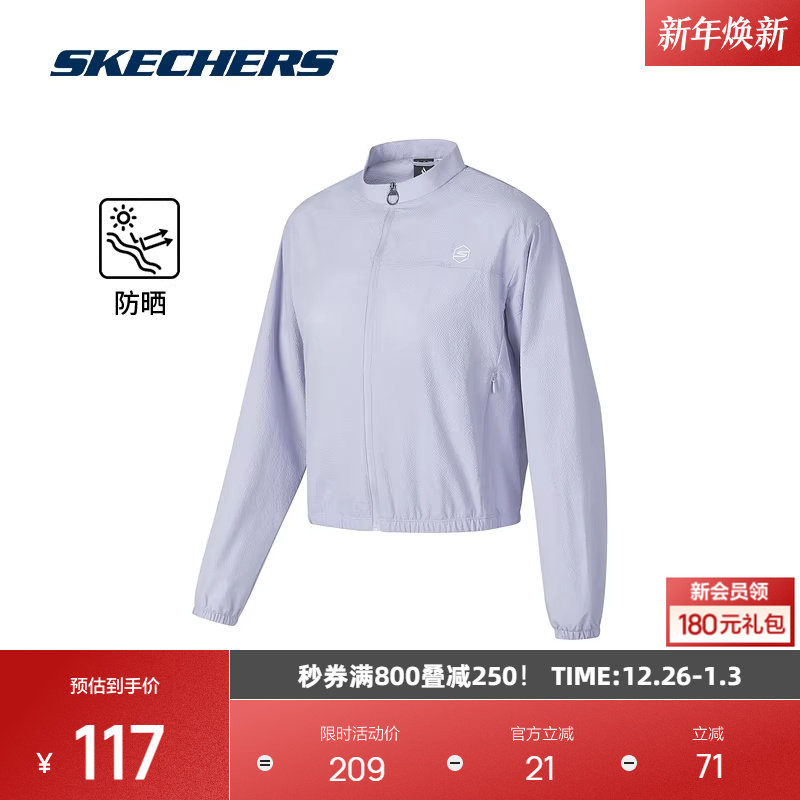 斯凯奇女子短款梭织外套舒适运动系列防紫外线立领设计防晒衣服