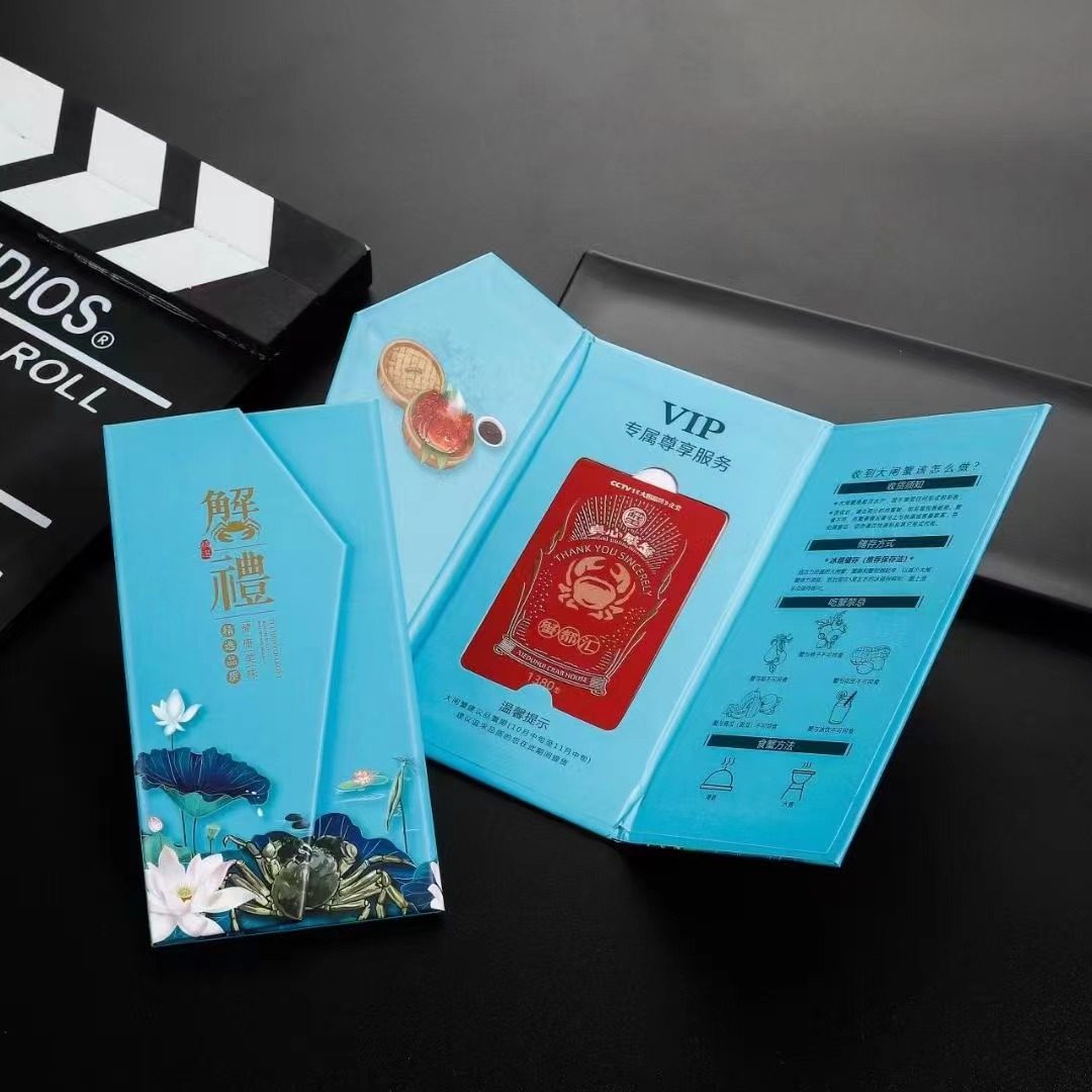 现货珠光胶印贵宾卡礼盒大闸蟹卡套VIP会员抽拉提货卡套包装定做