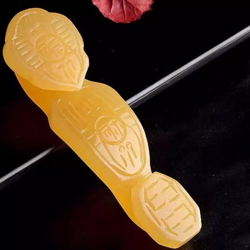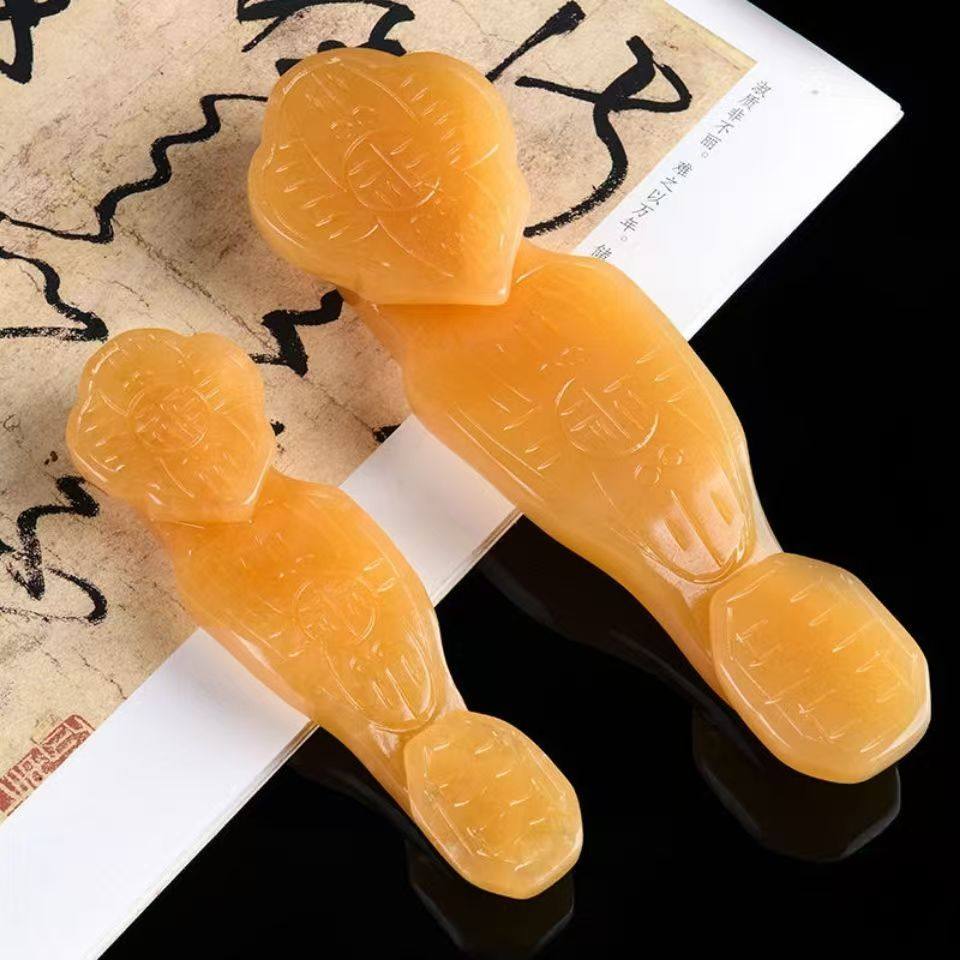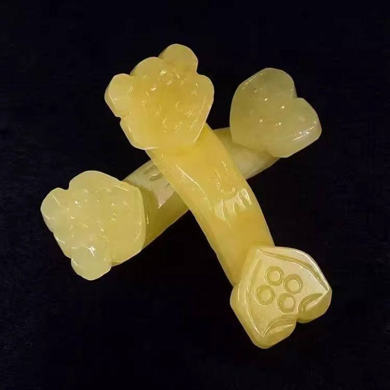 天然米黄玉二龙戏珠如意摆件纯手工玄关装饰摆设礼品玉石送礼桌面