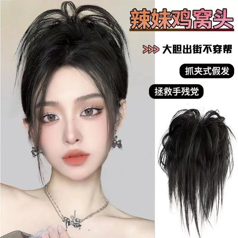 鸡窝头抓夹假发蓬松丸子头盘发发包辣妹毽子头鸡毛发夹假丸子发圈